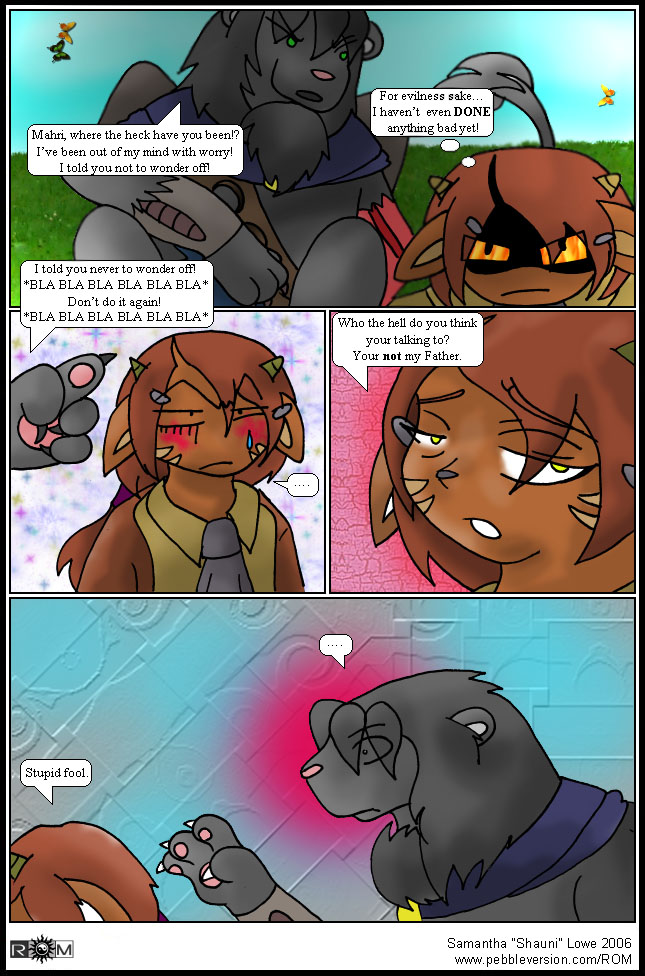 | ROM The Comic is based on the ROM RP from the Pebble Version forums. All characters are property of their respective oweners. The art and comic itself are the property of Samantha "Shauni" Lowe. ROM is hosted as a part of Pebble Version. |