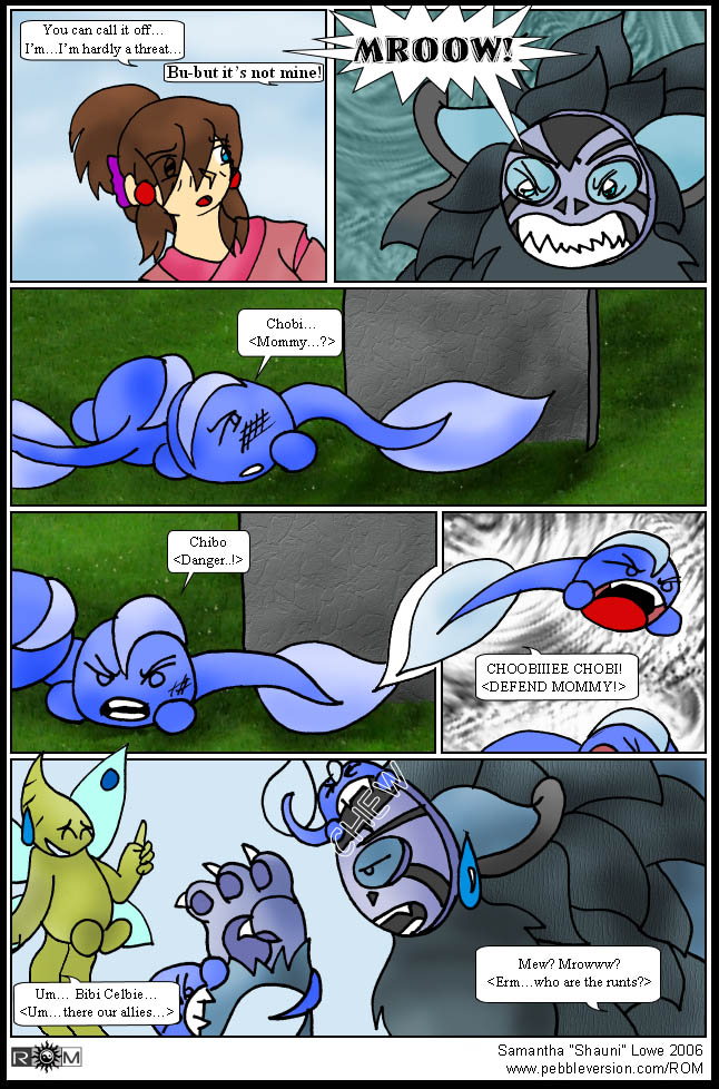 | ROM The Comic is based on the ROM RP from the Pebble Version forums. All characters are property of their respective oweners. The art and comic itself are the property of Samantha "Shauni" Lowe. ROM is hosted as a part of Pebble Version. |