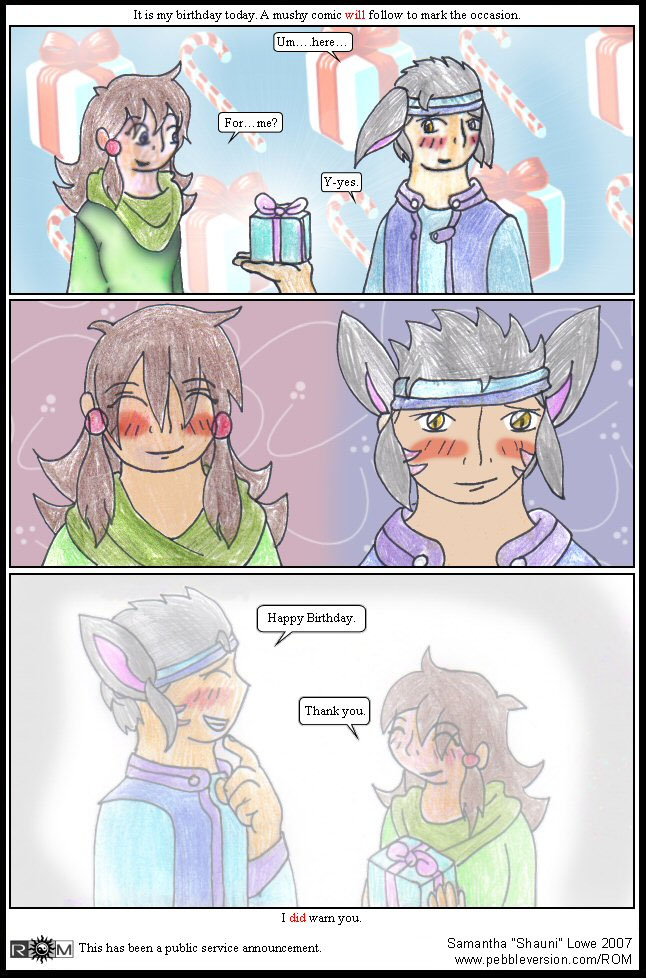| ROM The Comic is based on the ROM RP from the Pebble Version forums. All characters are property of their respective oweners. The art and comic itself are the property of Samantha "Shauni" Lowe. ROM is hosted as a part of Pebble Version. |