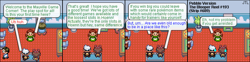 Pokemon and all related images and trademarks are copyrighted by Nintendo, one of my favorite games companies who would certainly never waste their time by trying to sue me. Especially since I'm protected under the Fair Use Rule of the United States Copyright Act of 1976. Aside from that the actual site content is copyrighted by me, Josiah Lebowitz 2003. |