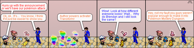 Pokemon and all related images and trademarks are copyrighted by Nintendo, one of my favorite games companies who would certainly never waste their time by trying to sue me. Especially since I'm protected under the Fair Use Rule of the United States Copyright Act of 1976. Aside from that the actual site content is copyrighted by me, Josiah Lebowitz 2003. |