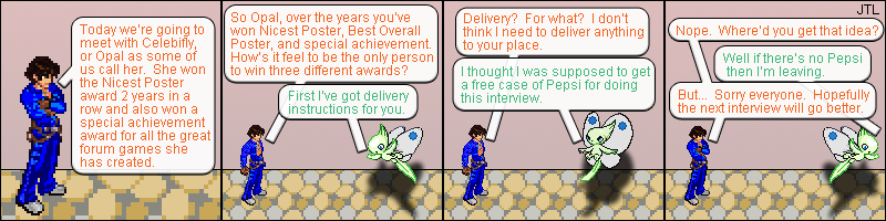 Pokemon and all related images and trademarks are copyrighted by Nintendo, one of my favorite games companies who would certainly never waste their time by trying to sue me. Especially since I'm protected under the Fair Use Rule of the United States Copyright Act of 1976. Aside from that the actual site content is copyrighted by me, Josiah Lebowitz 2003. |