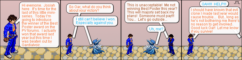 Pokemon and all related images and trademarks are copyrighted by Nintendo, one of my favorite games companies who would certainly never waste their time by trying to sue me. Especially since I'm protected under the Fair Use Rule of the United States Copyright Act of 1976. Aside from that the actual site content is copyrighted by me, Josiah Lebowitz 2003. |