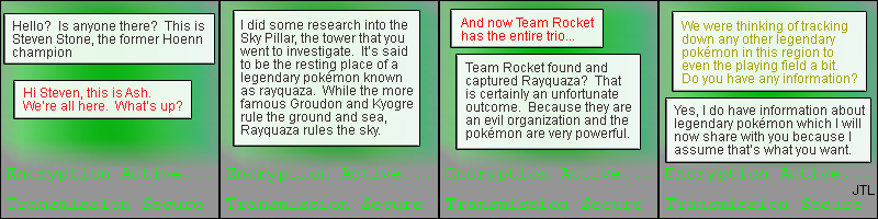 | Pokemon and all related images and trademarks are copyrighted by Nintendo, one of my favorite games companies who would certainly never waste their time by trying to sue me. Especially since I'm protected under the Fair Use Rule of the United States Copyright Act of 1976. Aside from that the actual site content is copyrighted by me, Josiah Lebowitz 2003. | |||||||||