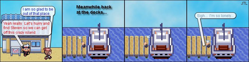 It's nice of Mr. Briney to just wait around at the docks until you're ready to leave. Though you've got to feel kind of bad for the guy. He's either loyal to a fault, and gets really taken advantage of by Brendan and May, or he's got absolutely no life and, therefor, nothing better to do. |