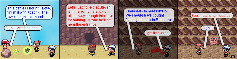 When you think about it, there's quite a lot of pokémon that naturally generate a lot of light. Some glow and some are literally on fire. And that's not even talking about different attacks and other movies But no one ever bothers to take advantage of the fact. It's all about flash. When it comes to game balance and mechanics, that makes sense. When it comes to general logic, not so much. Which can be said of quite a lot of stuff in the Pokémon world (and most game worlds, for that matter). |