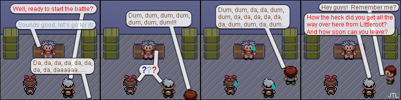 Ah, the battle music kid. He made for a fun recurring joke throughout much of the comic, though his appearances started to taper after a while. Gotta admire his dedication and enthusiasm, despite that fact that no one seems to appreciate his work. |