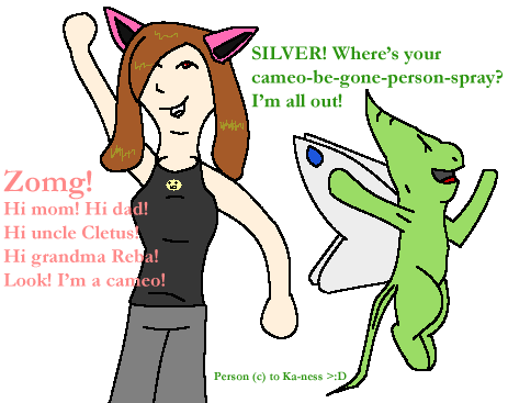 I am so short of interesting things to write about. The highlight of my dull week was finally getting my Kimiko Poster, MT Bag and Book from Megatokyo's store. The other highlight was finally getting some Ranma 1/2 anime, only having recently got into it myself... In case you’re wondering, the bird is silver, and the line 'Holy Fudge Crackers' is his little catch phrase. I didn’t make it up...I don’t get it myself, but he does use it for quite a few of his posts on the RP, in a kinda funny way...so the fudge crackers stay. It will be next week when I finally get all the promised cameos and shrine comics up for the filler comics contest, fitting them in naturally rather than just dumping them there takes longer than I expected, it might take up to 3 weeks to get all the ones in I owe. I’m also finally working on the cast page art…I want it to be my best…so I’ve been slow working on it… That’s it, that’s all I got...sorry ^^ Man I’m dull... Later Shauni |