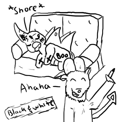 Sorry about today's comics lads and lasses, but on Friday afternoon I was dragged on a weekend holiday to Scotland visiting relatives, leaving me only Tuesday to make a comic, which is one day before the deadline. I didn't have time to edit the original artwork, and instead of subjecting you to a week without a comic, I used sprites made by sirjeffery, who some of you will remember from the re-coloring of comic two. So enjoy today's comic Also, I now have a concept art page you can get to here with sketches I have made for the comic, so I think I have left you with quite enough to keep you happy till next week Later Shauni |