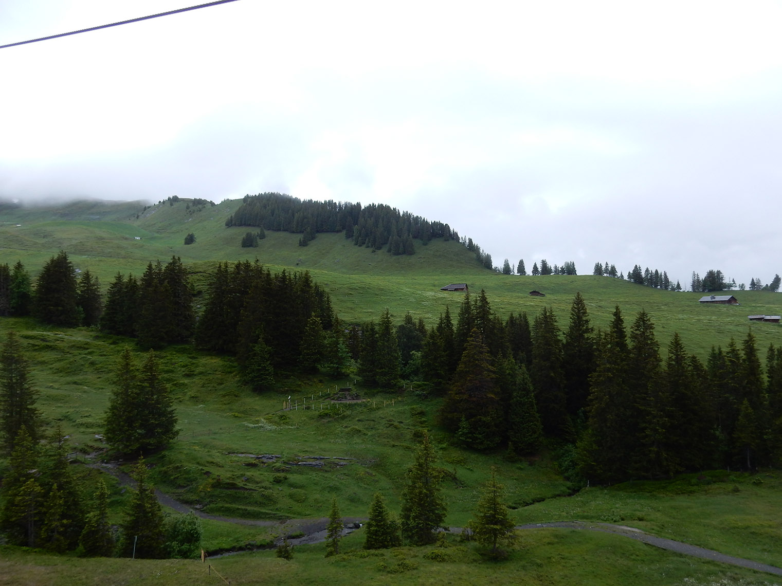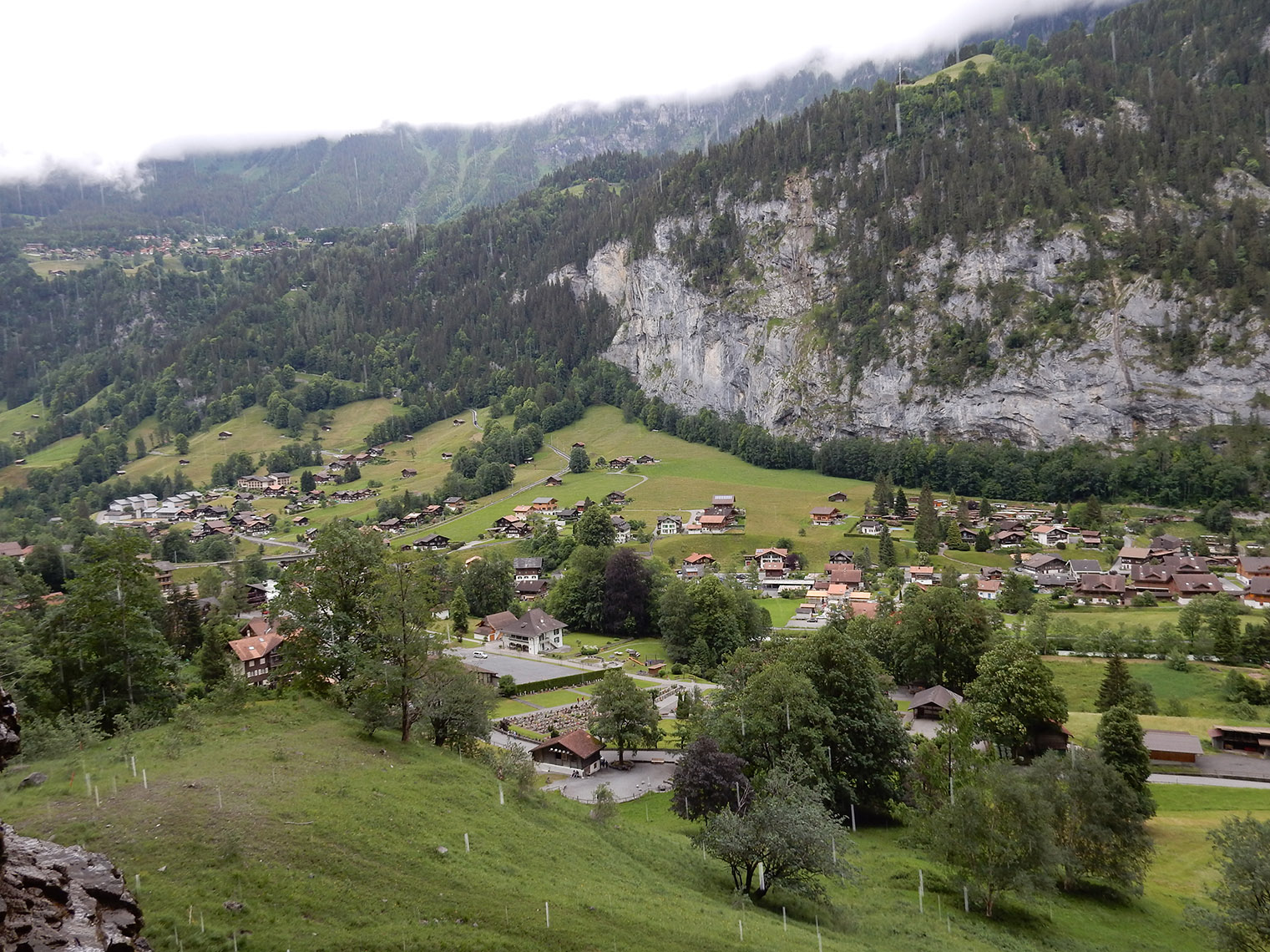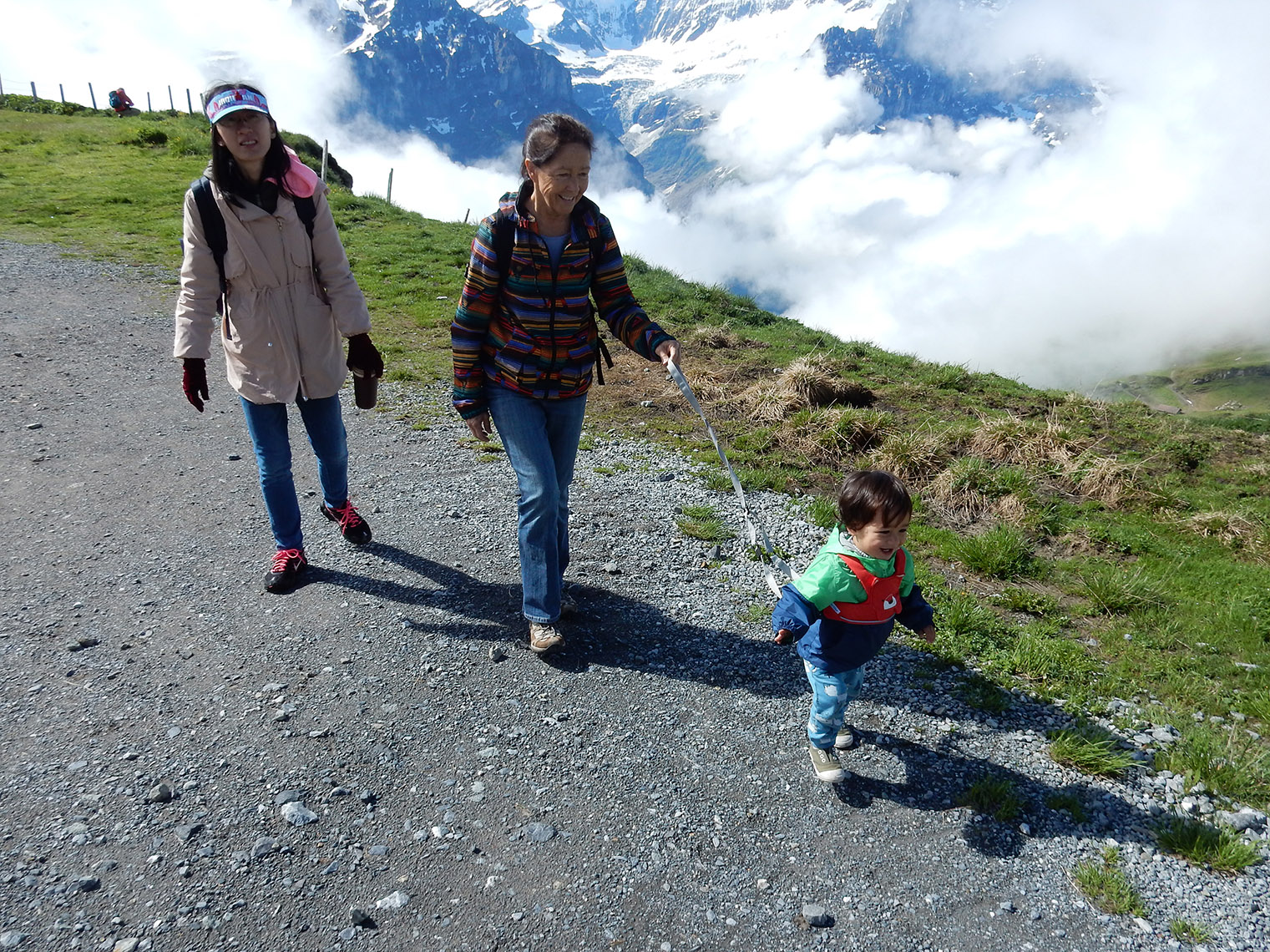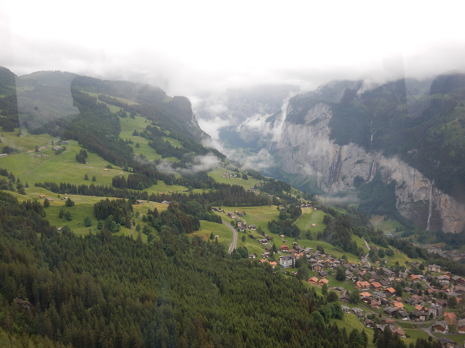 Anyway, from Lauterbrunnen we immediately hopped on a crowded cable car going up the mountain on the other side of the town (opposite the the one that Wengen and Grindelwald are on). Well, most of us. Connie was feeling a bit off so she opted to hang around the town for a while. The rest of us had a short but steep ride up. From there, we could have taken a quick train ride to our destination, but opted to walk instead.