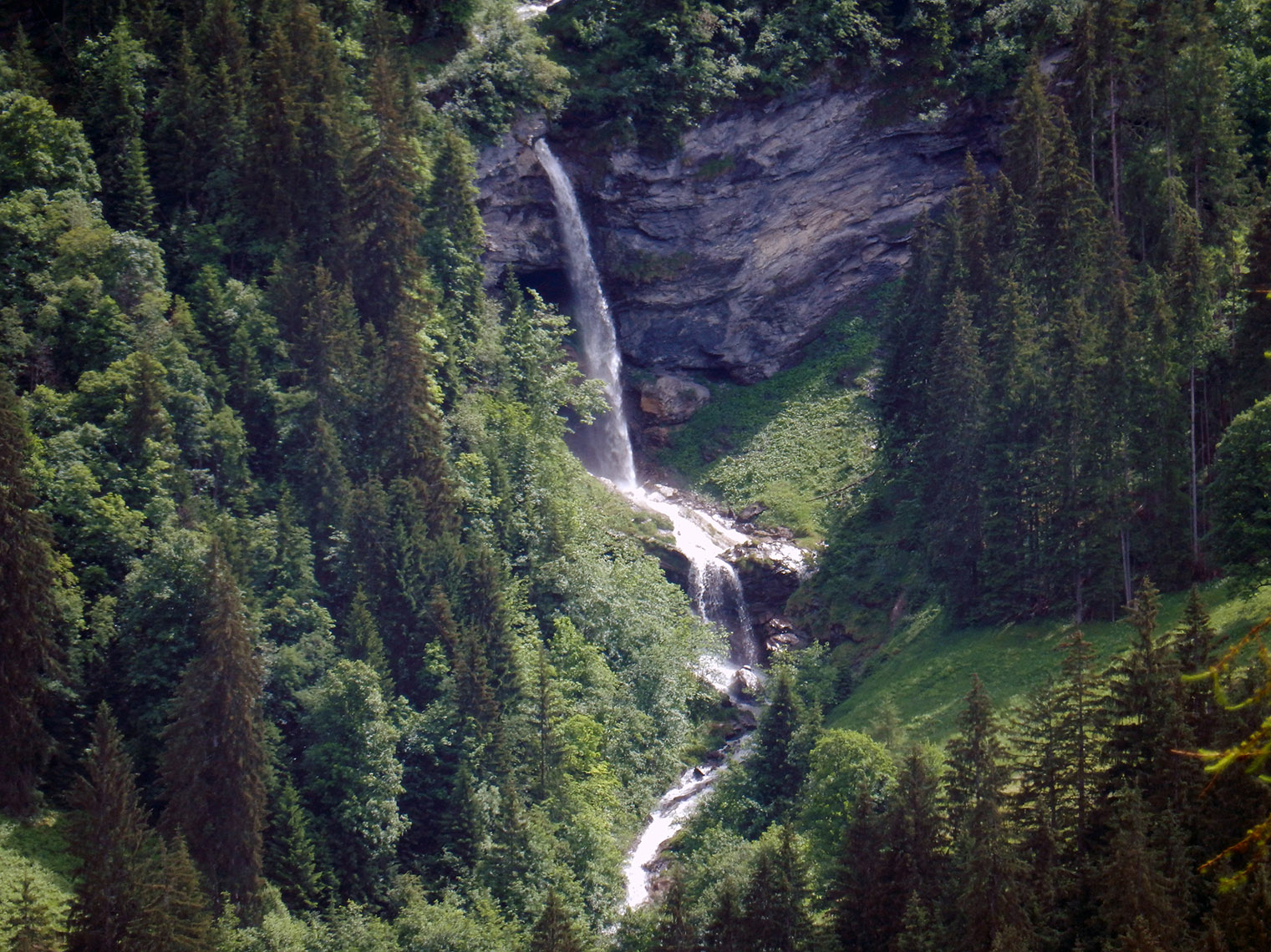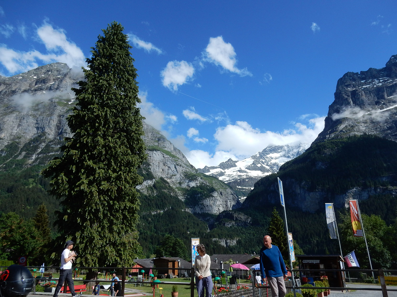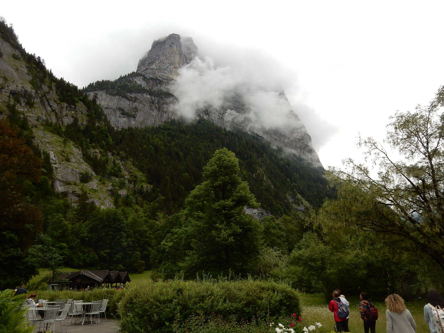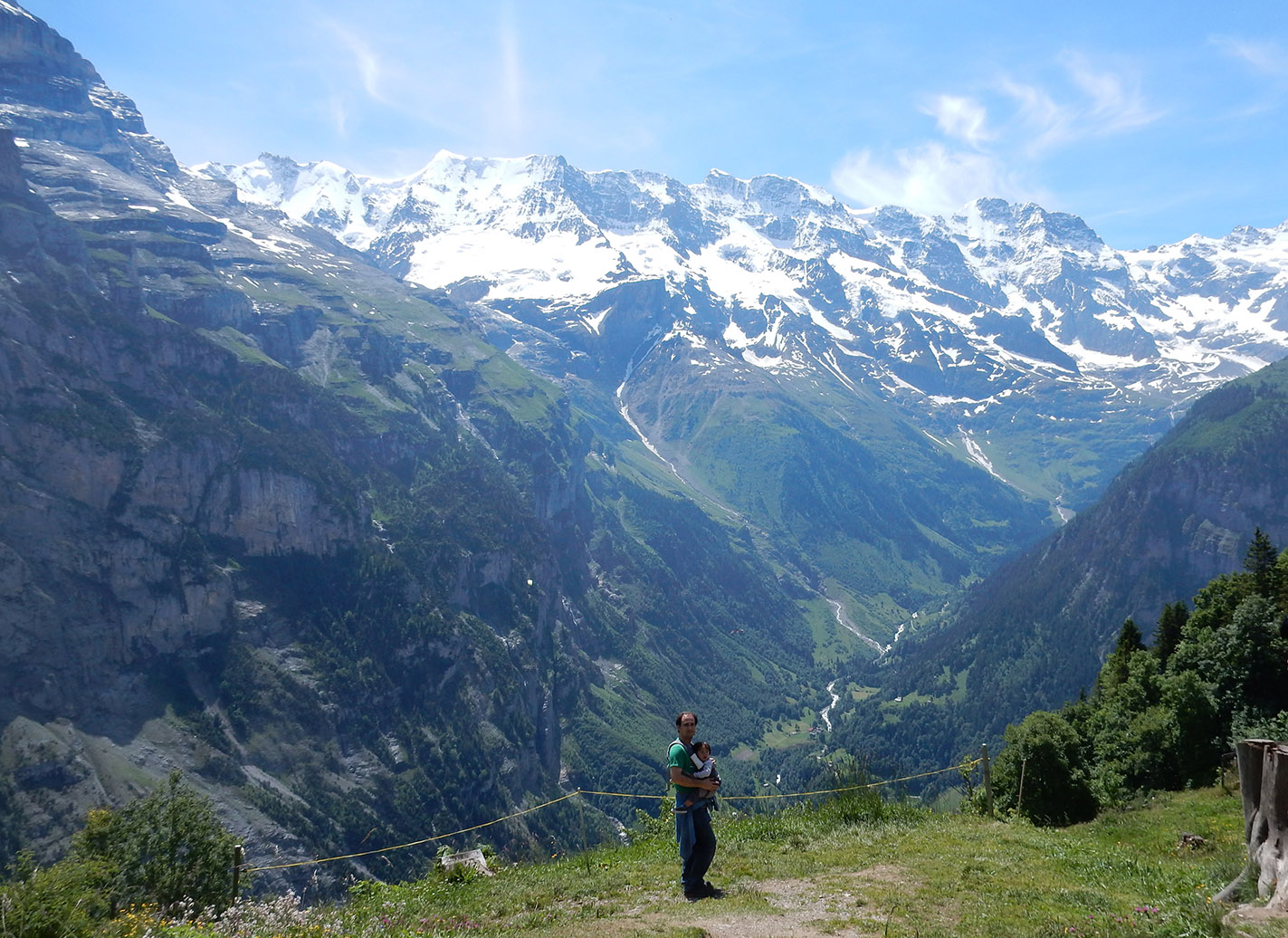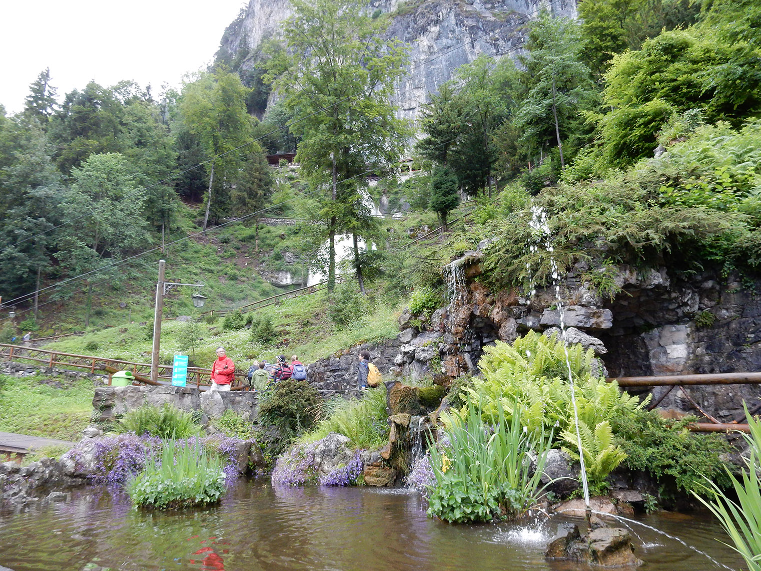 Anyway, from Lauterbrunnen we immediately hopped on a crowded cable car going up the mountain on the other side of the town (opposite the the one that Wengen and Grindelwald are on). Well, most of us. Connie was feeling a bit off so she opted to hang around the town for a while. The rest of us had a short but steep ride up. From there, we could have taken a quick train ride to our destination, but opted to walk instead.