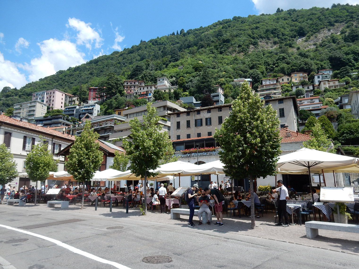 After exploring for a bit, we headed back down. We had been thinking of taking a boat to one of the other towns on the lake (boats and busses seem to be the most common way to go between them), but the times didn't match our schedule very well so we walked along the lake for a while in the other direction. It was a pleasant walk, though a bit crowded with lots of tourists hanging out, making use of a couple tiny beaches, and the like.