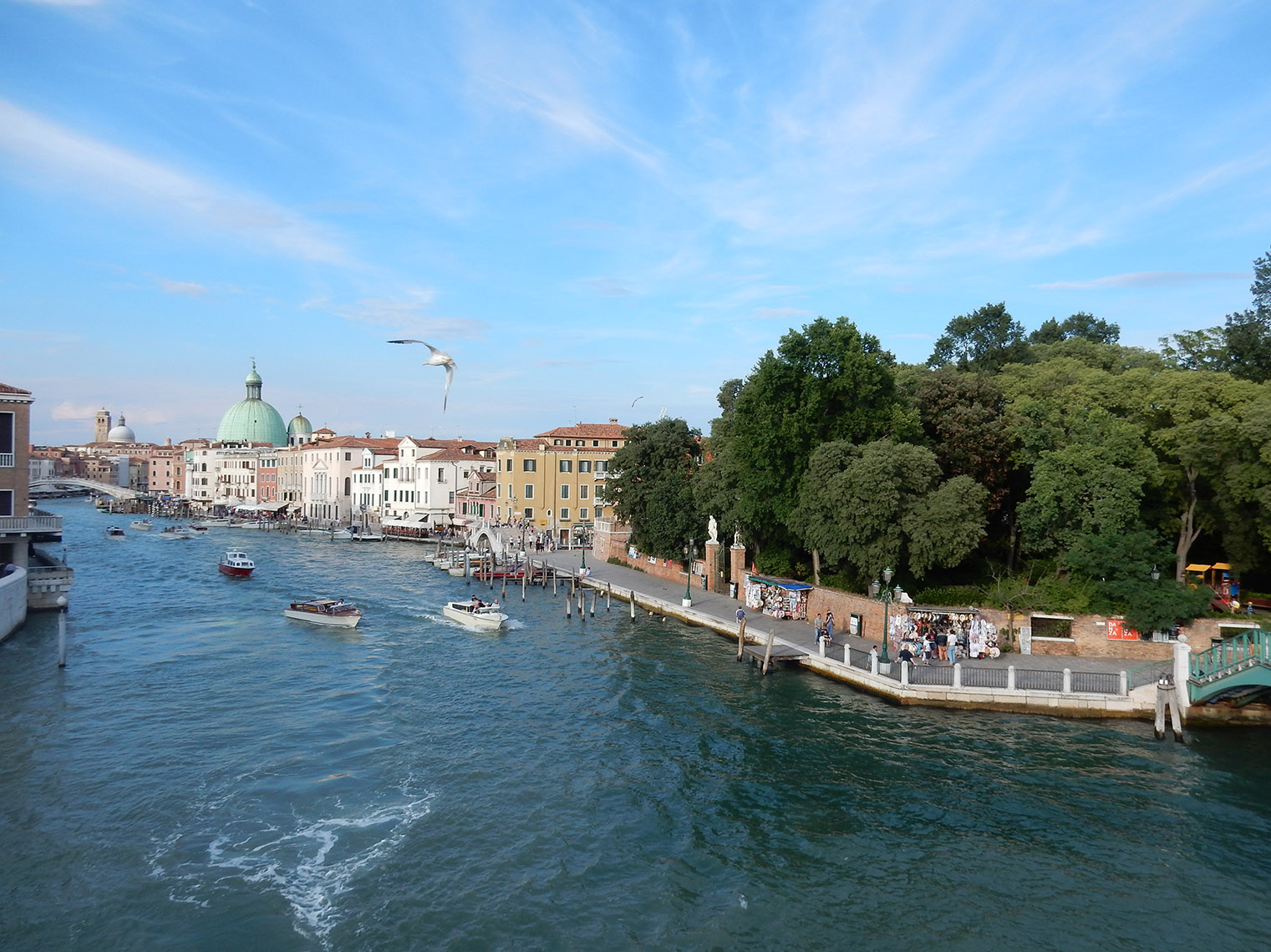 After a last good breakfast at our hotel, it was off to the train station to catch a train to our next destination. Venice, as you likely know, is a city set on the water. When traveling there, it's important to keep in mind that there's Venice proper, and also the sort of new Venice, which is an ugly industrial city on the coast. Staying there is cheaper, but you have to take a boat, train, or bus from there to get to the real Venice, so it's better to just stay in Venice itself if possible. You also need to make sure you don't get the train stations mixed up.