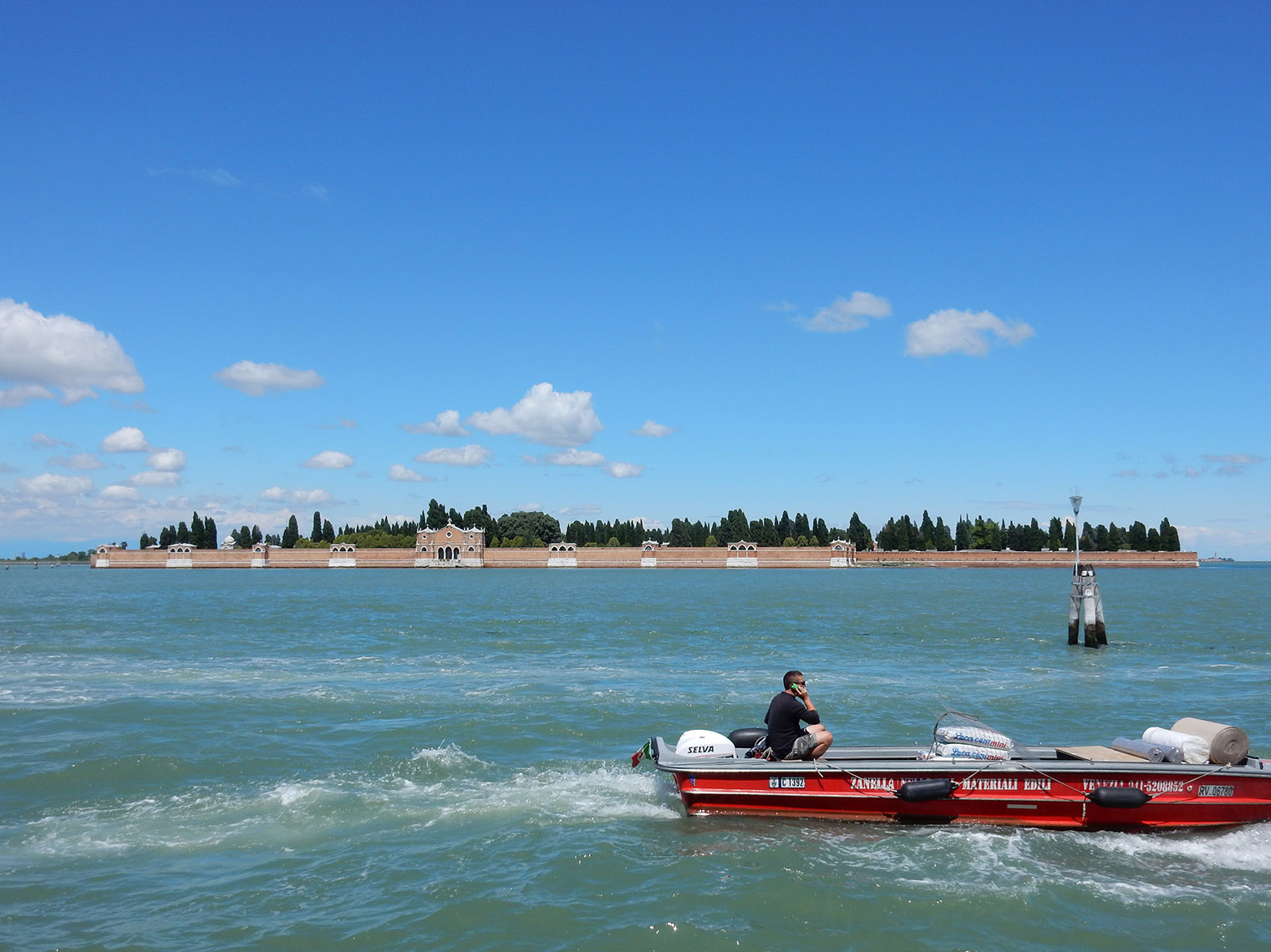 After lunch, we took a quick look at the paintings in the Basilica di Santi Giovanni e Paolo then ended up at the extreme north end of the city, which gave us a nice view of some of the nearby islands. We wound our way to the Scuola San Giorgio degli Schiavoni for some more paintings (there's no end to old buildings with fancy paintings in Venice) then let Zack play for a bit. At that point, we'd done a lot of walking and wanted to get to the other side of the city, so we decided to get back on the vaporetto and ride there (our passes let us ride for 24 hours). This time, the weather was perfect and we were able to get decent seats, so it was a much more enjoyable ride than in the morning. While it's not the same as riding one of Venice's iconic gondolas, it's a much, much cheaper was to enjoy the views along the Grand Canal.