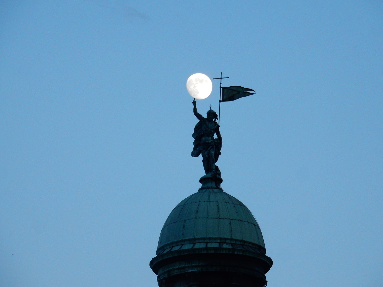 Zack fell asleep early, so I did step out for a bit later in the evening to walk around and grab a slice of pizza. In the end, I found myself hanging around outside the train station waiting for the moon to move into position for a perfect shot...