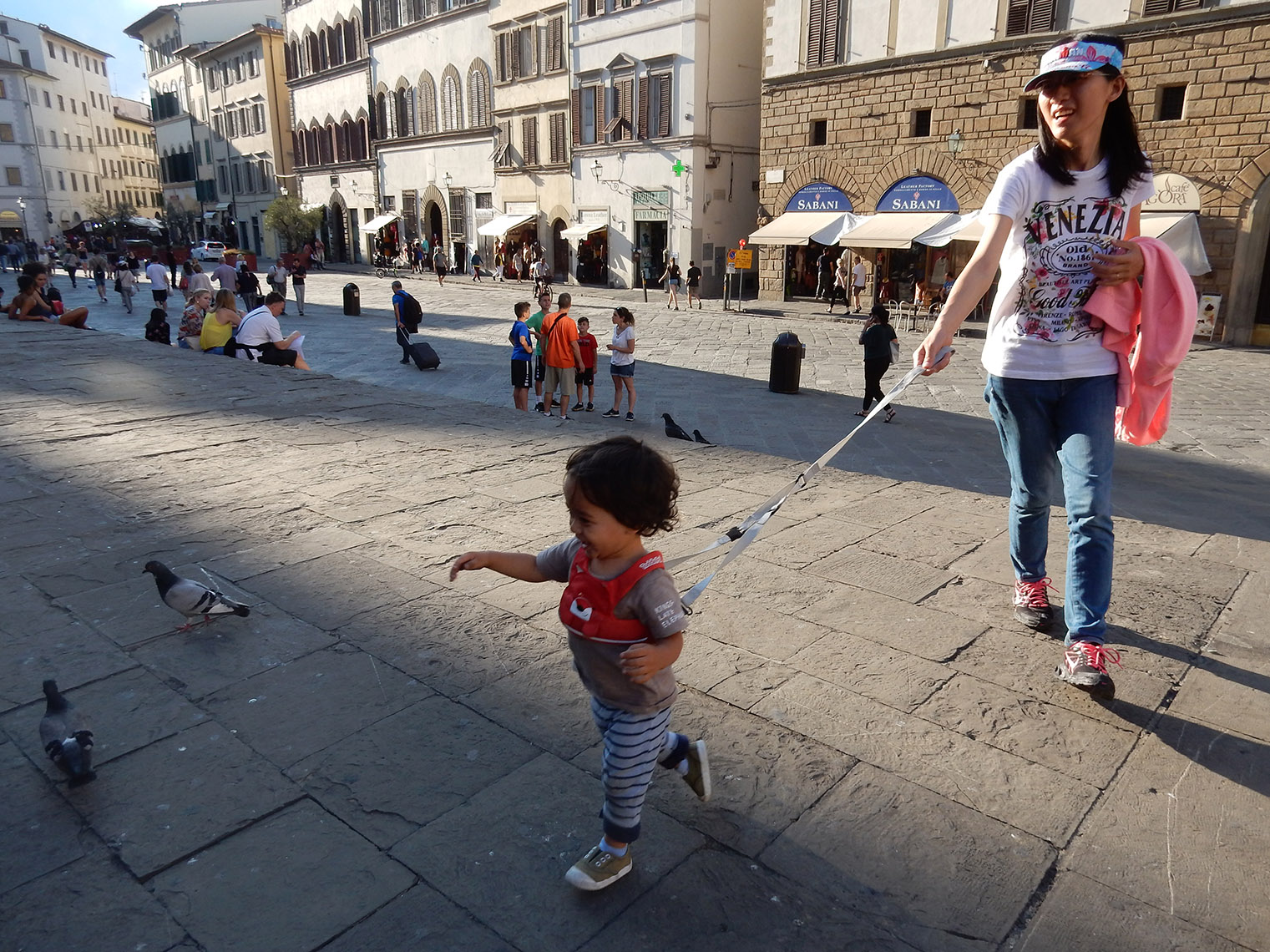It wasn't especially late when we finished, so Connie and I walked around Florence a bit. We ended up near the Basilica of Santa Croce, though didn't really feel like waiting in the line, so we just looked out the outside. Other than that, we snacked a bit and spent quite a lot of time letting Zack run around and chase pigeons, since he'd been stuck in the Ergo for most of the day.