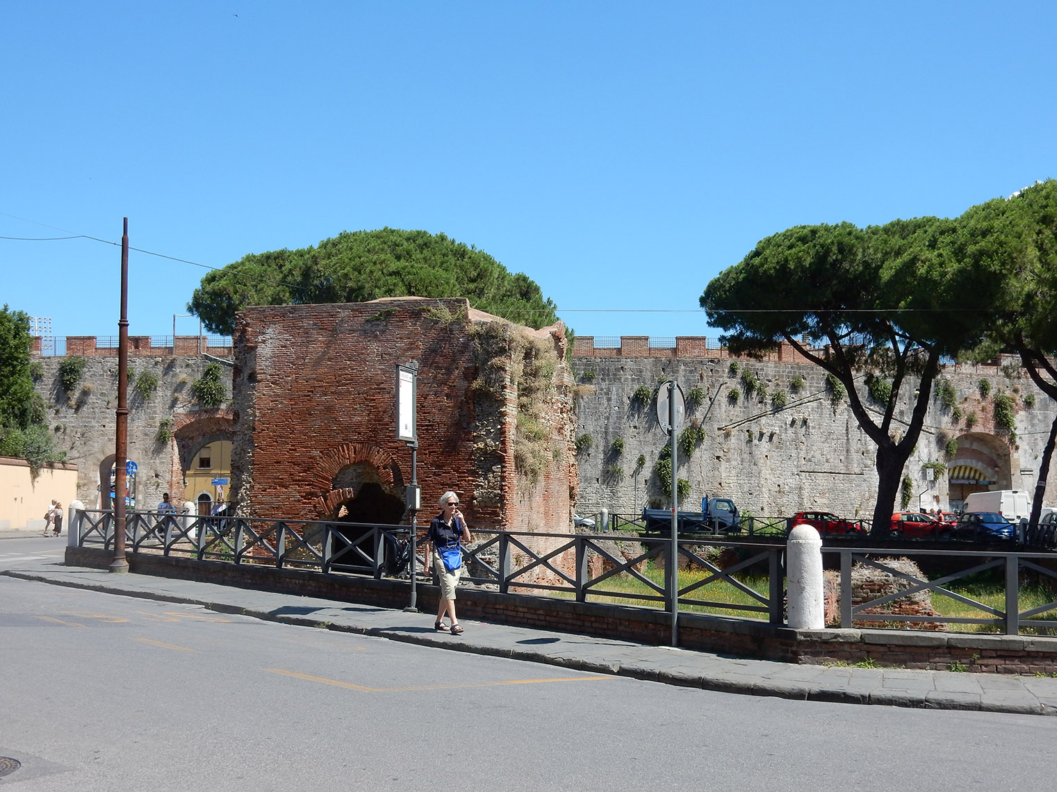 Pisa's most famous attraction is a 20 minute or so walk from the station. But it's a pretty nice walk, running through a scenic stretch of the old city. On the way, I noticed that Pisa actually used to be a walled city. Some of the wall remains and there are places where you can climb up and walk on it, though we didn't have the time for that. I did get some good gelato though.
