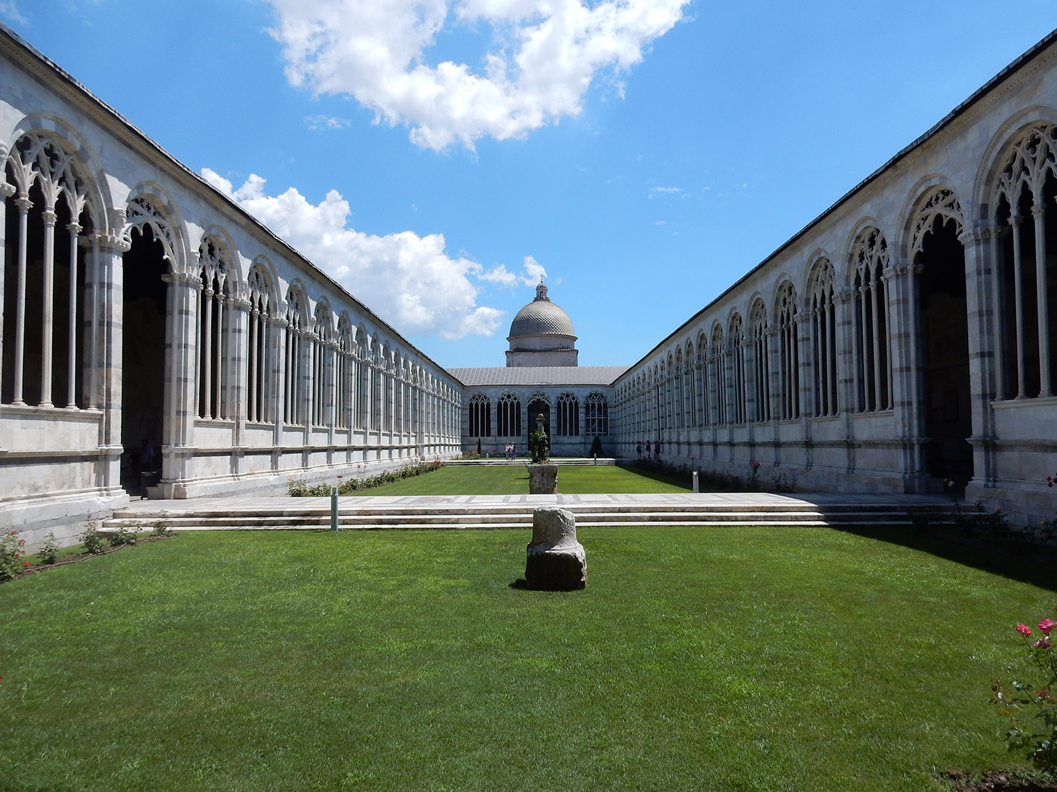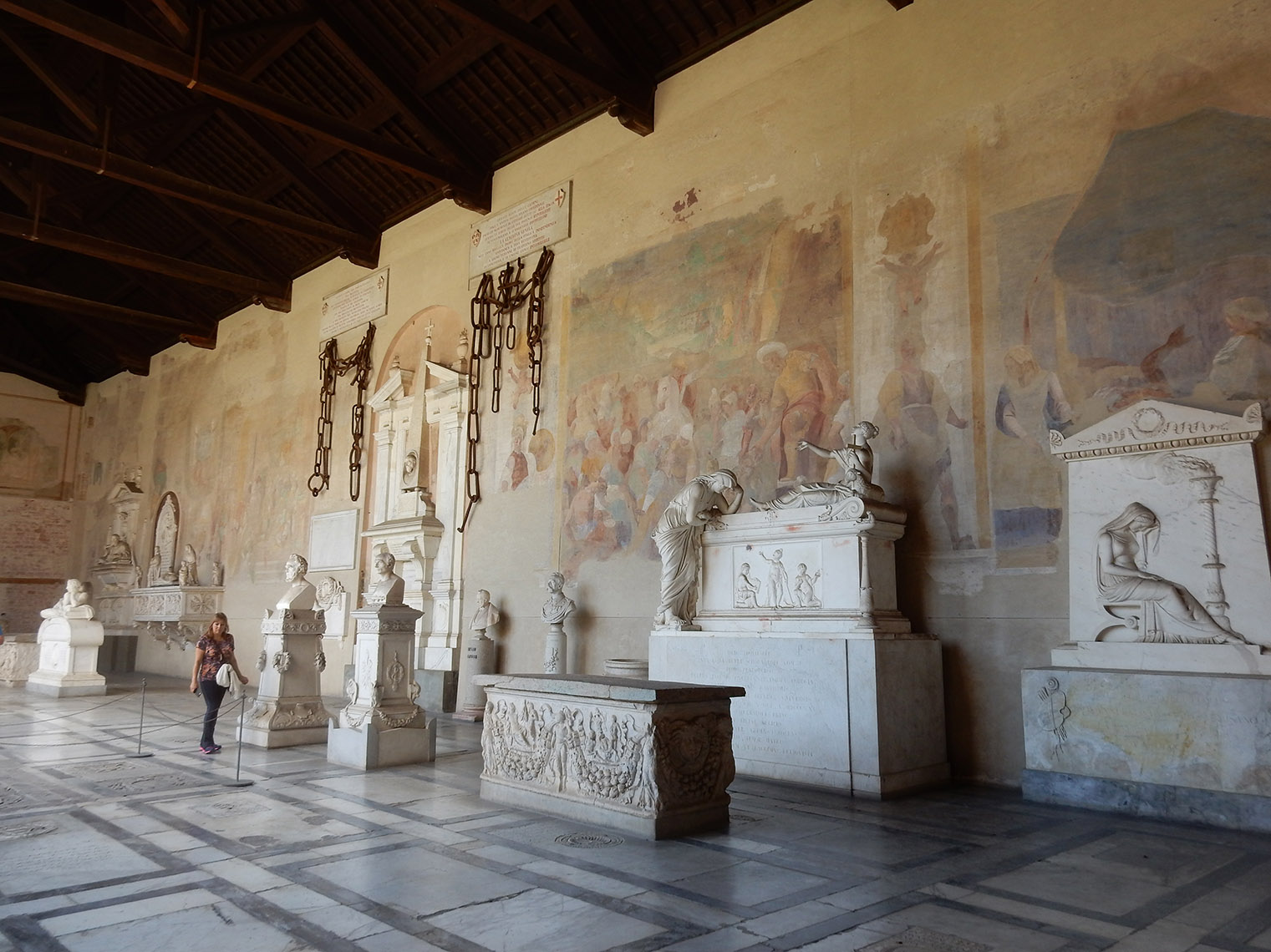 We had combo tickets for the entire complex (minus a couple museums which were undergoing renovations) and decided to start with the Composanto. Actually, we had no idea of composanto meant when we went in. Turns out, it's a really fancy cemetery. Presumably for Pisa's rich, powerful, and very religious. The older tombs dated back hundreds of years, while some more recent ones were from only a few decades ago. It was a very peaceful place, with some nice paintings and carvings, and even Connie, who normally doesn't like cemeteries of any kind, really enjoyed walking through it.