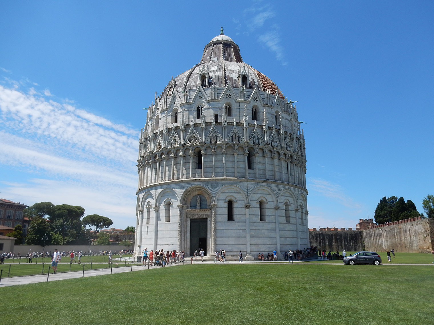 Of course, the main reason we came to Pisa, well, the main reason everyone goes to Pisa, is to see the Leaning Tower. It was a bit smaller than I expected... But Zack was getting pretty restless so, before we could explore, we needed to let him run around a bit. Fortunately, while the area immediately surrounding the tower was packed and people were limited to the sidewalks, the area off to the side of the Duomo just past the tower was fully open and much less crowded.