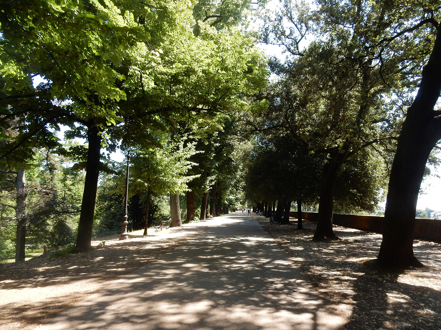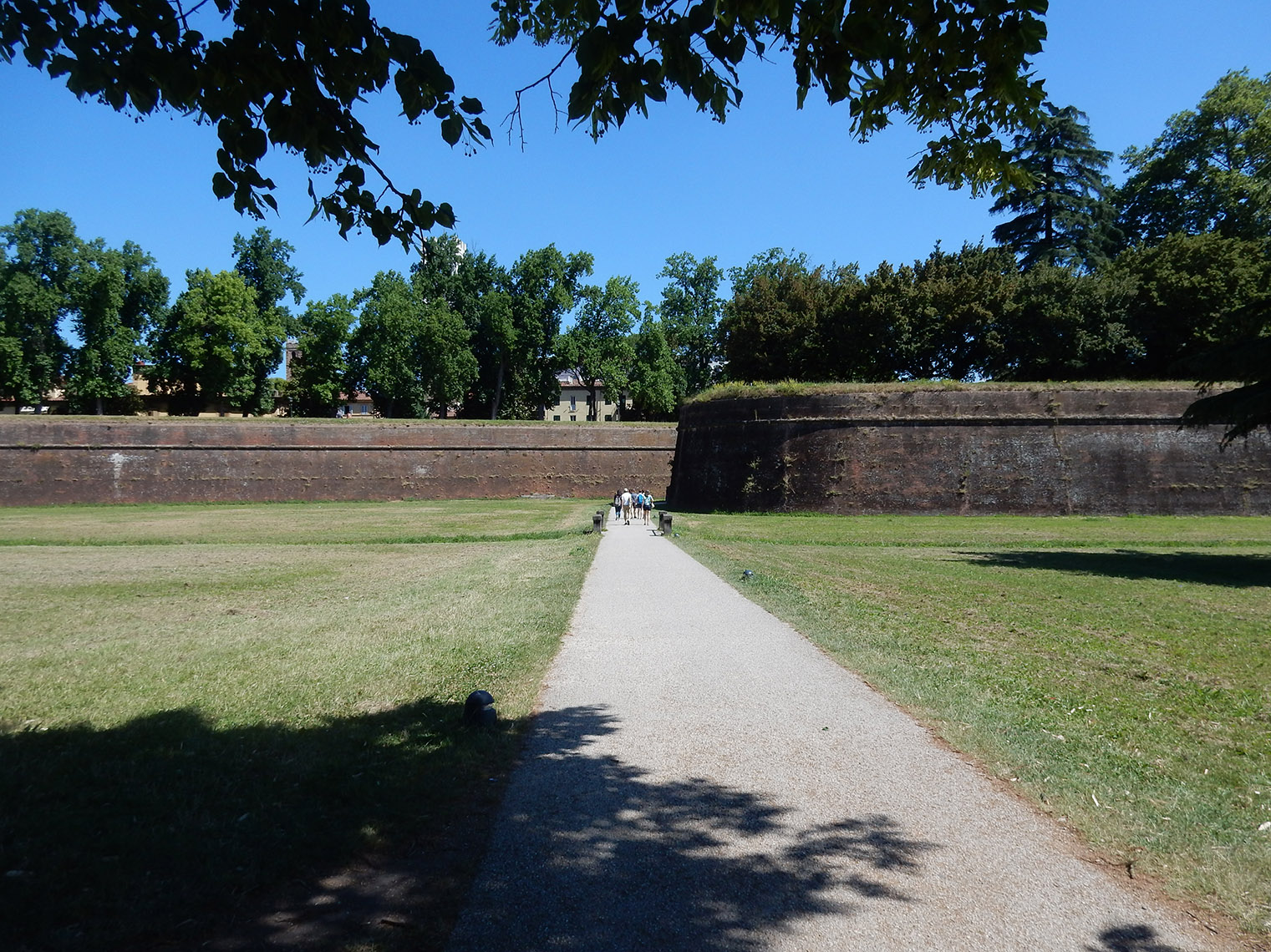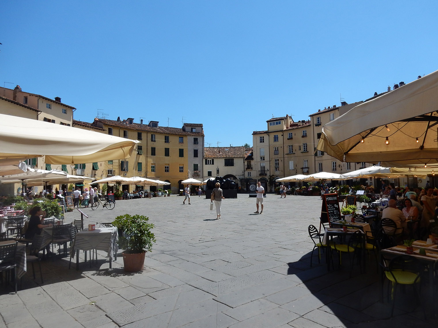 The next day trip on my list was Lucca. It's claim to fame is its old city, which is pretty much fully intact and surrounded by a wall. The wall encircles the entire old city, though it only really looks like a wall from the outside. From the inside, it's more of a hill that you can walk or bike on. There's a number of parks and the like up there as well, making it a pleasant place to kill some time. The entire loop is around 2 1/2 miles, but Connie and I only did half of it (going from the south end of the city to the north) before descending into the city. Compared to other old Italian cities, Lucca felt a bit more compact, probably because it all had to fit inside the wall. We headed towards the Anfiteatro Romano, the remains of a former Roman amphitheater. While it doesn't exactly look like the one in Rome anymore, seeing a big round piazza of sorts in the middle of the city was kind of cool.
