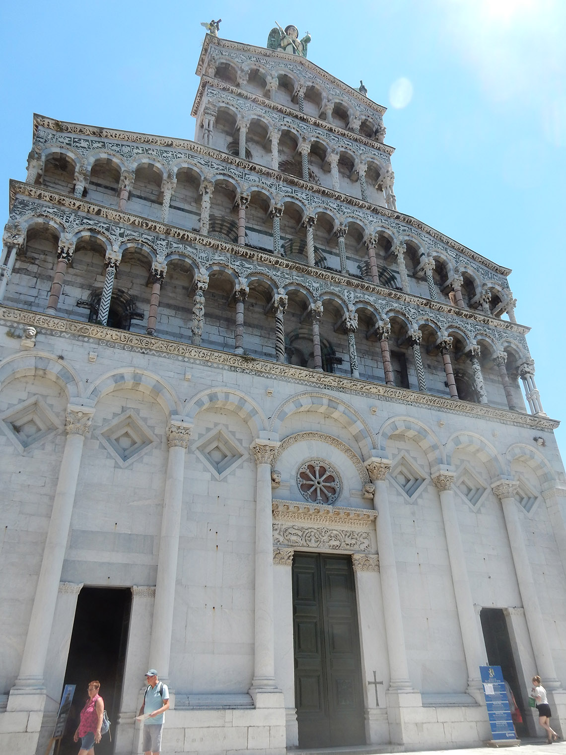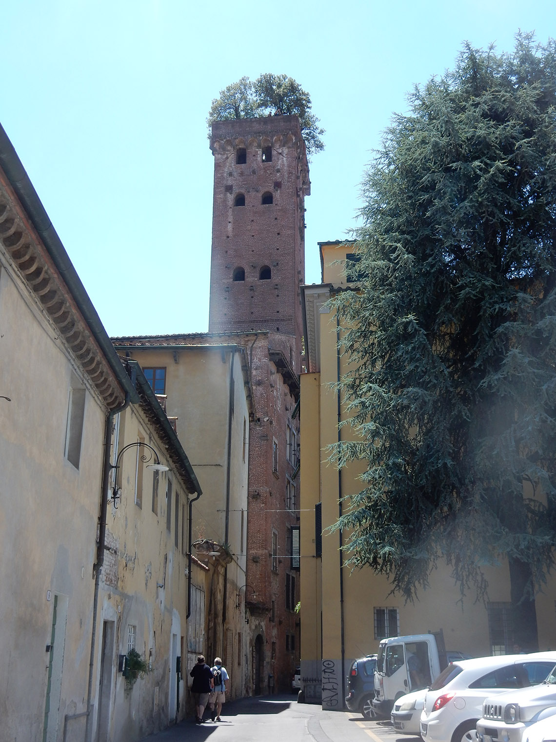 From there, we swung by the nearby Torre Guinigi. Lucca has a surprisingly large number of towers, especially given its size, but Guinigi stands out due to the trees (olive, I think) on top. Naturally, I had to climb it. Annoyingly, Zack was napping again, so I had to carry him all the way up with me. The view was worth the effort though.