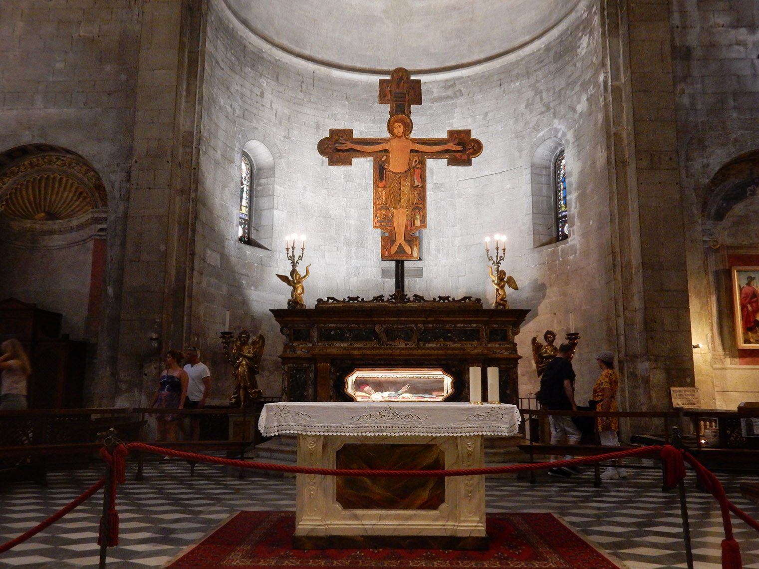Our next stop was San Michele in Foro, though we stopped outside for a bit first to let Zack run around. Like many big Catholic churches in Italy, San Michele contained a number of graves and tombs, though they seemed to be almost the main focus here. This mummy of sorts was the centerpiece and, while the others we'd seen were kind of ambiguous, this one really looked like a mummy. Kinda creepy to see in a church.