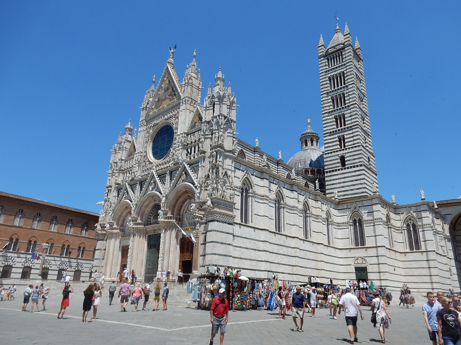Siena isn't especially large, but it is a neat old town. What really sets it apart is that it's on a hill (or rather several hills, I think). So expect to do a lot of climbing. There also seemed to be a strong Roman influence, so it appears that Siena and Rome had close ties, though I haven't had a chance to look into its history.