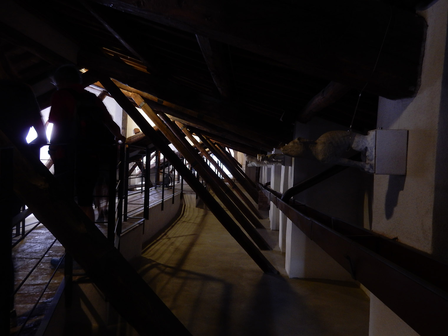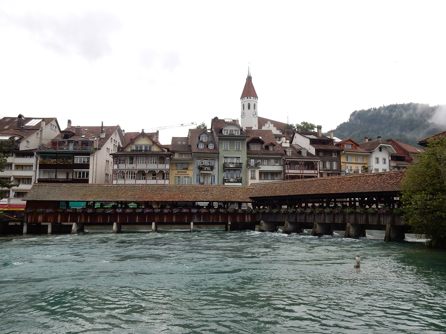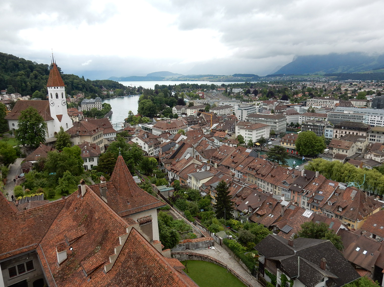 After finishing our tour of the cave, we got back on the bus and headed to the town of Thun on the far end of the lake. It's a nice place with a strong European flair, at least in parts. We started out by walking around, browsing, and snacking a bit. Not sure if it was a special day or something normal, but there were a lot of food stalls set up kind of like a farmers market. We got some really good olives and cannolis on our way and eventually meandered over to Thun Castle. The castle dates back to the 1200's and was originally built as a fortress then later became the residence for the town's mayors. Now, the inside has been turned into a museum (free if you have a Swiss Pass) with some historical information and relics and some great views from the top.