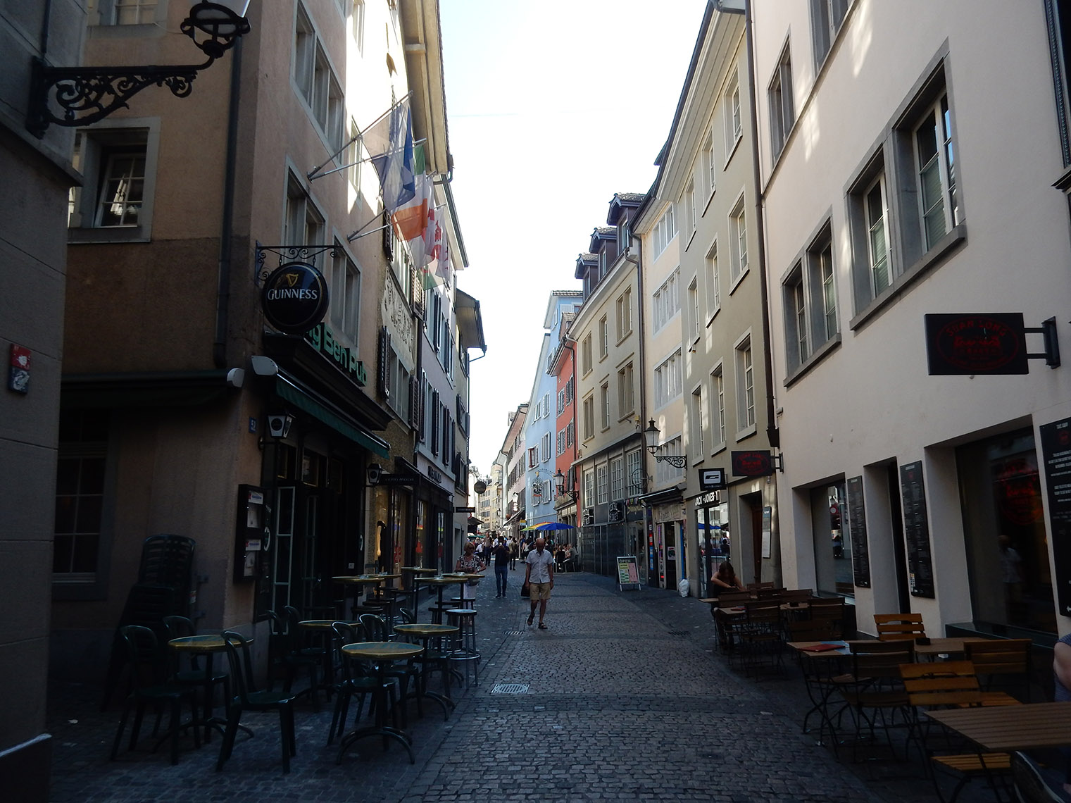 Fortunately, we were able to get a local train to Zurich (they didn't check tickets, so I'm not sure if we would have needed to pay or not). So we did make it, albeit considerably later than planned. It's a nice looking city, but due to the delays we didn't have a lot of time explore. We did walk around a bit in an nice old area by the river to find a restaurant. The food was good, but cost about three times as much as it would have in Italy. After that, we let Zack spend some time at a nearby playground and then called it a night.