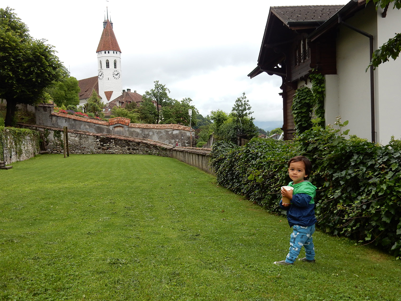 After touring the castle, we walked around Thun a little longer then decided to take the boat back to Interlaken. As we'd heard, the boat was a lot slower. Mainly because it makes a lot of stops and has to zigzag back and forth across the lake to reach them all. However, it's also very scenic and a pleasant way to spend a few hours, with lots of great sights both across the lake and along the coast. The boat even had a kids' play area, which was pretty convenient.