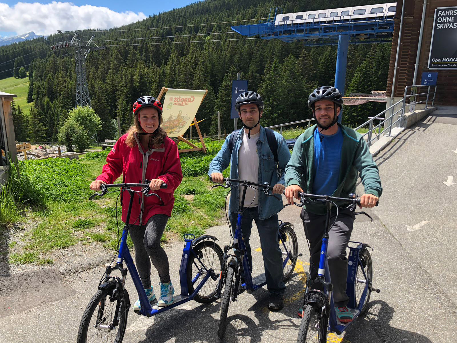 We spent quite a while there before we started to think about going back down into Grindelwald. The question was, how to go. Sure there was the cable car, but the area also featured zip lines, tricycle type things, and scooter bikes (well, more scooter than bike). The scooter bikes were the only one that went all the way down to Grindelwald and a few of us split off from the rest of the group to give them a try. It ended up being a lot of fun. We basically coasted down the mountain, following a curvy road through grassy meadows and fields. We had to watch out for the occasional car and hiker, but it was a fairly quiet road and there was no need to actually push the scooter until the very end when we got into Grindelwald itself (we were riding the break the whole way). If you ever happen to be in the area, I really recommend it.