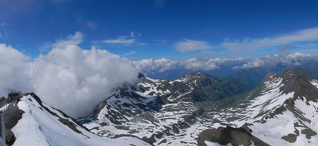 Connie was feeling really motion sick after the ridge up (the cable car swayed a lot, so I couldn't blame her) and decided to wait at Brig while I took the next cable car up even higher to Piz Gloria. It's one of the highest peaks in the area, and a good distance above Brig. As previously mentioned, it's the place where they filmed part of the 007 James Bond film On Her Majesty's Secret Service. As such, they really play up the Bond theme with Bond music on the cable car, Bond souvenirs and info boards, and even a Bond museum. I'm not really a big Bond fan though, and Connie was waiting, so I didn't pay too much attention to that and focused more on the awesome views. Now I've gone up a lot of mountains, but usually it seems like there's always a higher peak nearby. It was pretty spectacular to actually be atop the highest peak for a change and I'm really glad I want.