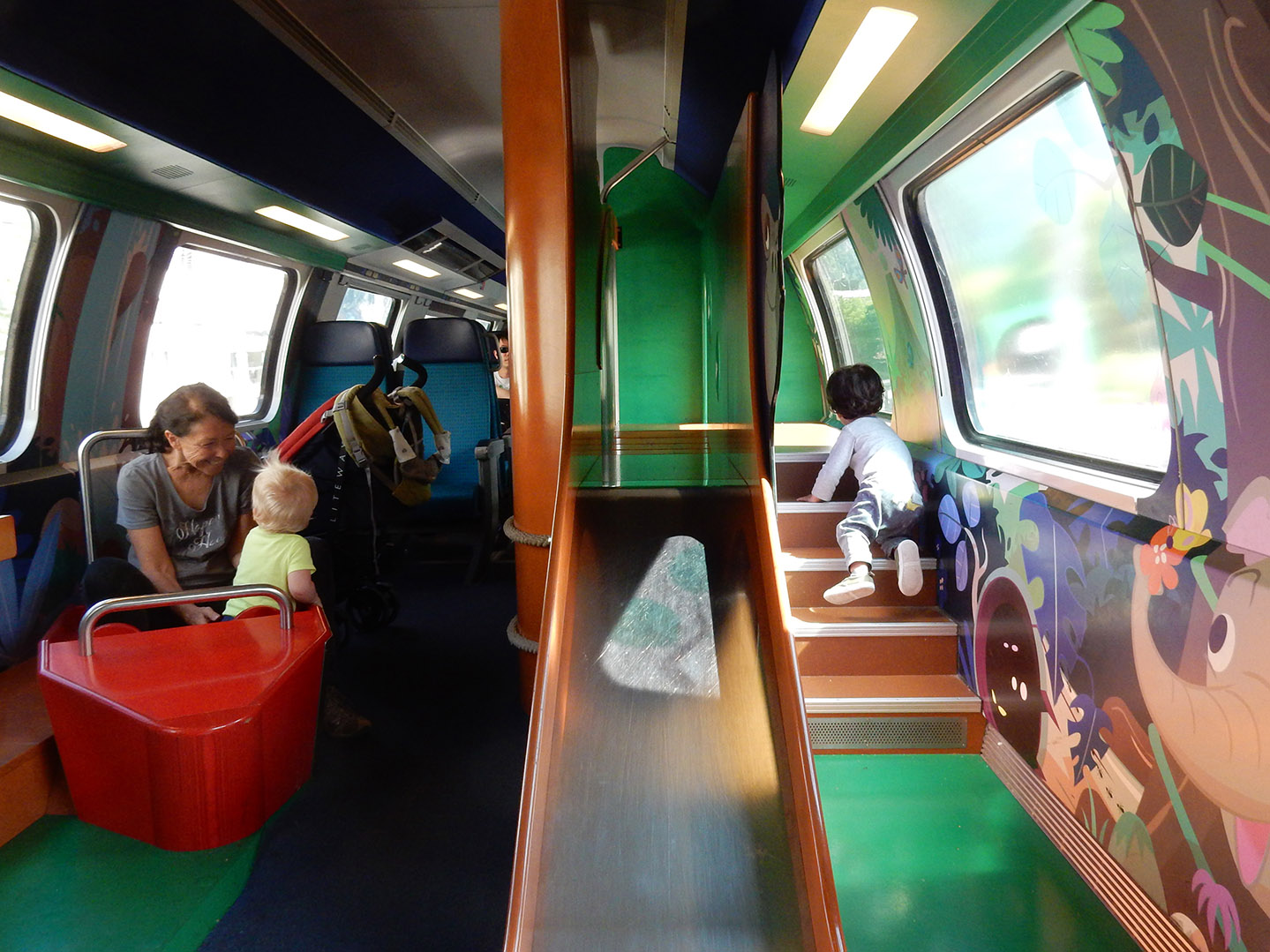 But we boarded the train and everything was good...until we got to Milan. We arrived to find that our train to Zurich was running 45 minutes late. That was annoying. Then 45 minutes turned into 1 1/2 hours. It actually ended up being even later than that but at the end they decided not keep updating it on the board (either they were lazy or didn't want to show how late it was). Eventually though, we got on the train and were on our way to Zurich. Though I have to say, I really missed the big Swiss trains with their kids' play areas.