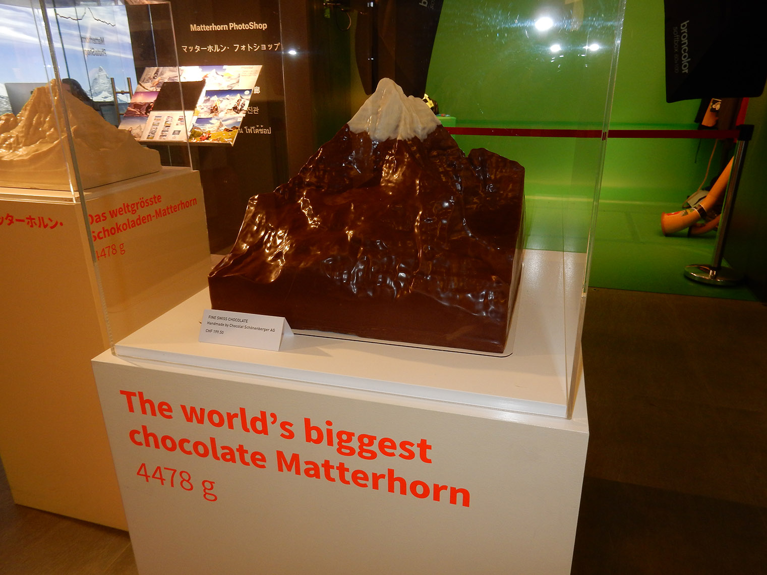 Complaints about the price aside, we rode the train all the way up to the top where they have an observatory, which also serves as a hotel for people who want to spend a whole lot of money to be in an extremely inconvenient location. I really hope the guests at least get unlimited tickets for the train. Anyway, the area did offer amazing views of the Matterhorn and the surrounding mountains. It also has the world's largest chocolate Matterhorn (in four different varities) as well as some smaller versions you could purchase and take home.