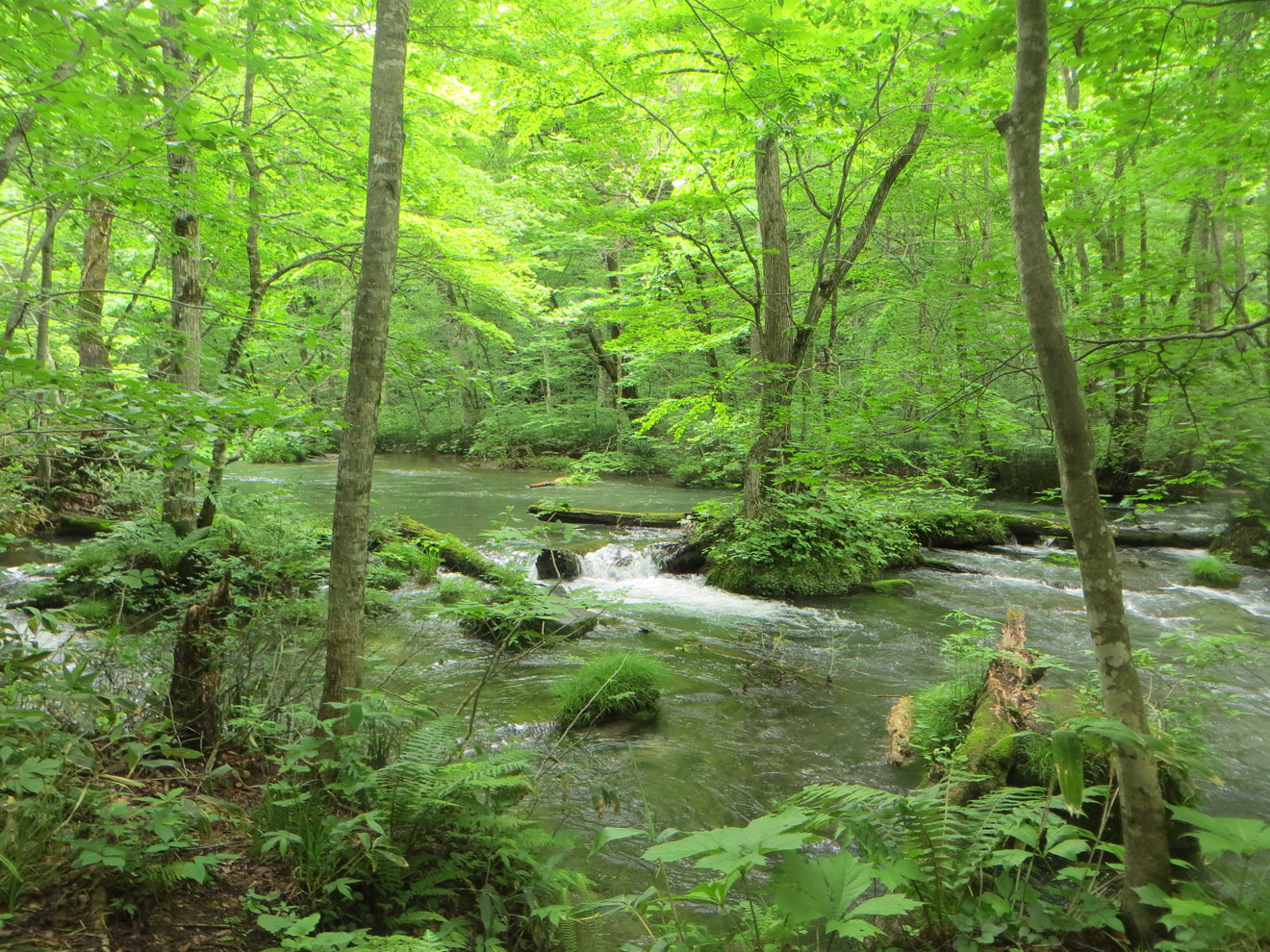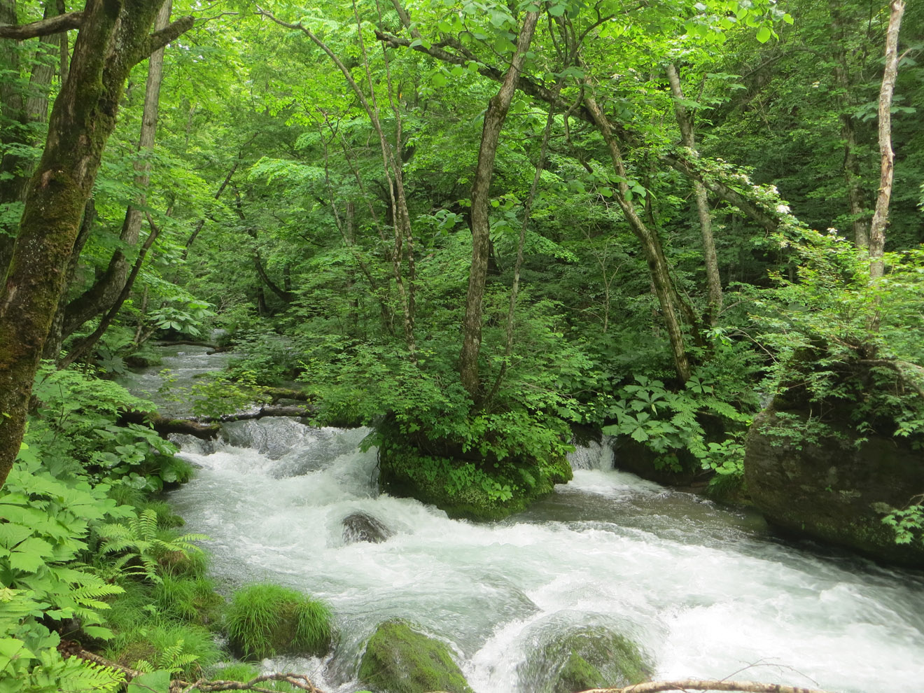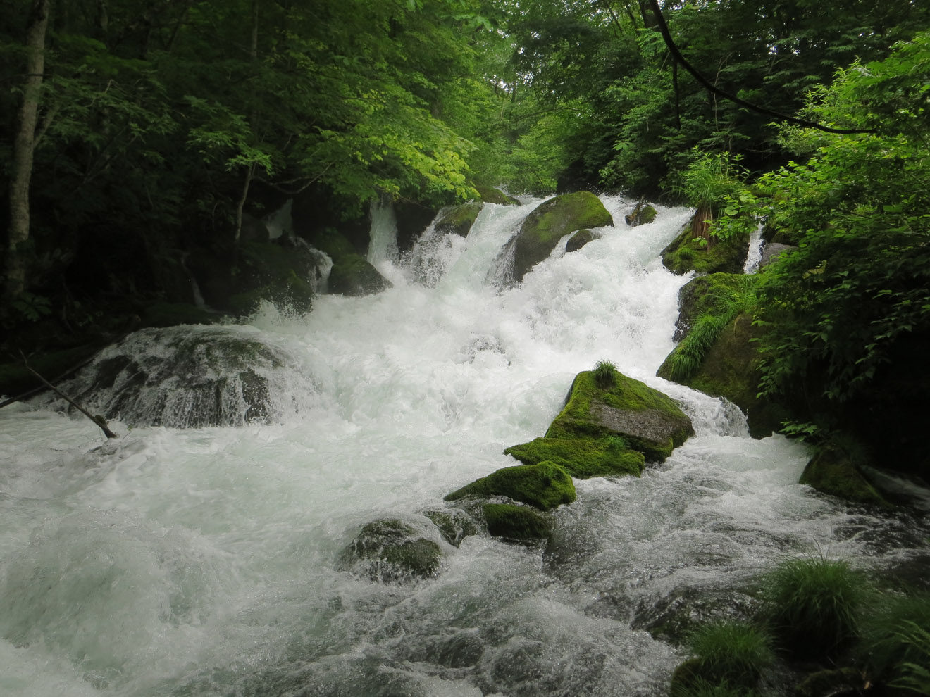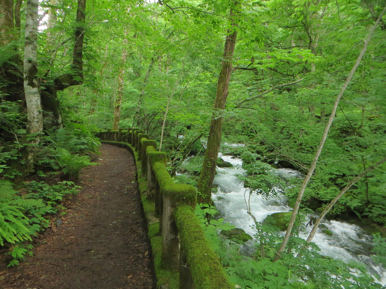 More than any other day I've had so far on this trip, time was a factor today since there were only several buses going to and returning from my destination (the hiking trail alongside Oirase Stream). I had everything worked out very carefully to ensure I'd get there at a decent time and wouldn't miss the last bus back when I was done. So naturally it was the one day my alarm doesn't work. Seems that, in the middle of the night, my cellphone connected to a different network but screwed up the time and date sync and, as a result, got them wrong didn't realize it was time to play the alarm. I woke up an hour later than I needed to, missing the train I'd wanted to take and, as a result, making it impossible to catch the first bus. I wasn't happy but, after some quick internet research, I determined that I could still get there in time to catch the second bus. It'd drastically reduce my hiking time, but I might be able to complete the trail and, if not, there were bus stations along the way so I wouldn't get stranded even if I ran out of time. Anyway, I eventually made it to the start of the Oirase Stream trail (or the end, depending which direction you go). Oirase Stream is more of a river in my opinion and runs out from Lake Towada. Both the stream and the lake are rather popular destinations, especially in the falls when the leaves are changing color, but unfortunately the trains don't stop anywhere close., you have to take a fairly lengthy bus ride from one of two different train stations to get there. The entire trail runs around 13 kilometers (~8 miles). I had planned on giving myself a leisurely 5 hours to finish, though I doubted it would take more than 3. Instead, I ended up with around 2 1/2 so I was really rushing, alternating between a fast walk and a jog without a single rest stop (other than brief pauses to take pictures). It turned what would have normally been a rather easy trail into a bit of a speed and endurance test. But anyway... I started off at Yakeyama, which is the end of the trail furthest from the lake, and proceeded to follow Oirase Stream back towards it source. The trail is mostly flat, and none of the slopes are especially steep. You're also often, though not always, near the road, though it's not an especially busy one. As a side note, while it's pretty enough with the stream and forest, that first section of the trail between Yakeyama and Ichigedo is both the longest and least scenic stretch. Things start to pick up at Ichigedo (a large rock slab supported by a tree). The scenery gets more diverse (especially the stream) and, a bit further down, you start to hit the waterfalls. And there are a lot of waterfalls of all different kinds, fourteen according to my tour map. Though some were small enough it's hard to say if they really count. More nice views of the stream as well, of course. One of the last (and best) waterfalls is Choshi Great Falls. I had been nervously keeping an eye on my watch the entire hike but by the time I reached Choshi I knew for certain I was almost there and doing ok. In fact, I reached Lake Towada with around 20 minutes to spare so I was pretty pleased with myself. There's actually a town on the other side of the lake where you can stay, take ferry rides around the lake, and the like. But for me, I had to catch the last bus back to the train station so I could return to Sendai. All in all, it was a a nice and very scenic hike and, despite the length, extremely low intensity (unless you're rushing like I was). I'm sure it's spectacular in the fall, though I've heard it's far more crowded then, while for me on a weekday in the off season, there were only occasional other hikers, with the odd cluster at the major waterfalls. As a side note, if you don't care for hiking and just want an overview on your way to Towadako, you can see many of the waterfalls and other scenic spots from the bus (it even announces them and stops for a few seconds so you can get a good look). |