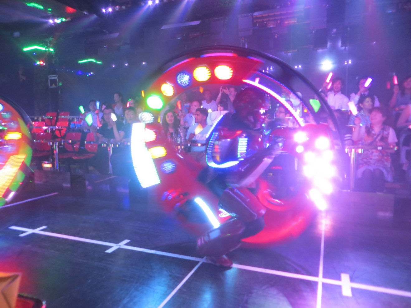 Tuesday afternoon (after making up for some missed sleep), I met up with my friend Ida in Shinjuku. We got lucnh and spent quite a while chatting about all sorts of things before she had to head off. Since I was already in Shinjuku, I decided to check out an item on my touring list. If you read my Japan travelogue from last year, you may remember that I mentioned seeing a truck driving around Shinjuku advertising the new Robot Restaurant. Well, back then I dismissed it but after seeing it featured on an episode of Anthony Bourdain, I decided it would be a worth a visit. Here's a couple of interesting signs I spotted along the way. The first is for a couple of theme restaurants that can be found in the area and the second is for one of the country's newer fads, cat cafes, where you can pay to spend time with lots of cute cats (and that's it). If you're in the right area, Robot Restaurant is fairly hard to miss. I didn't have a reservation, but I got there fairly early and was able to get a ticket without problem (that said, by the time the show started the place was nearly full). Despite the words restaurant in the name, its not really a place to eat (though there is a food and drink menu). You start off in the lounge, were you can sit and order drinks and snacks while waiting for the show to start. There's also a pre-show, featuring some rather talented musicians dressed as robots (or maybe the knights from St. Seiya). I thought the flute player was especially good. Eventually, everyone is led out of the lounge and down into the basement for the main show. The show itself is pretty hard to desribe. I'll try, but you really need to look at the pictures and videos. So anyway, the show has multiple parts, each with its own theme. Robots of sorts are involved, as are flashing lights and lots of cute girls. The first part of the show has a Japanese vibe with taiko drums, dancing demons and tengu, and the like. On an odd side note, I couldn't help noticing that a couple of the girls had tattoos which, in Japan, are usually reserved for Yakuza members. Do they come from that kind of family? Or maybe the tattoos were fakes drawn on for the show? After an intermission with the pre-show musicans, it was on to robot boxing! Followed by a loose attempt at a story with a whole bunch of copyright infringing characters battling a hoard of invading alien robots. For example, here we have some robots vs. a magical girl with Captain American's shield, Thor's hammar, and Sailor Moon's intro speech (not all are show in the clip). She had trouble with that last guy, but fortunately Jaws was around to help. And that's barely scratching the seruface as fas as pop-culture references go. Then there was the part with lots of different robots and vehicles running around. That transitioned into dancing robots (really, I think this video is a great representation of the show) which then moved on to dancing girls. All in all, the show was quite the experience. A bit goofy, but fun, zany, and the over the top. Certainly worth a stop if you have part of an evening to kill and don't have any serious object to lots of girls in somewhat skimpy costumes. |