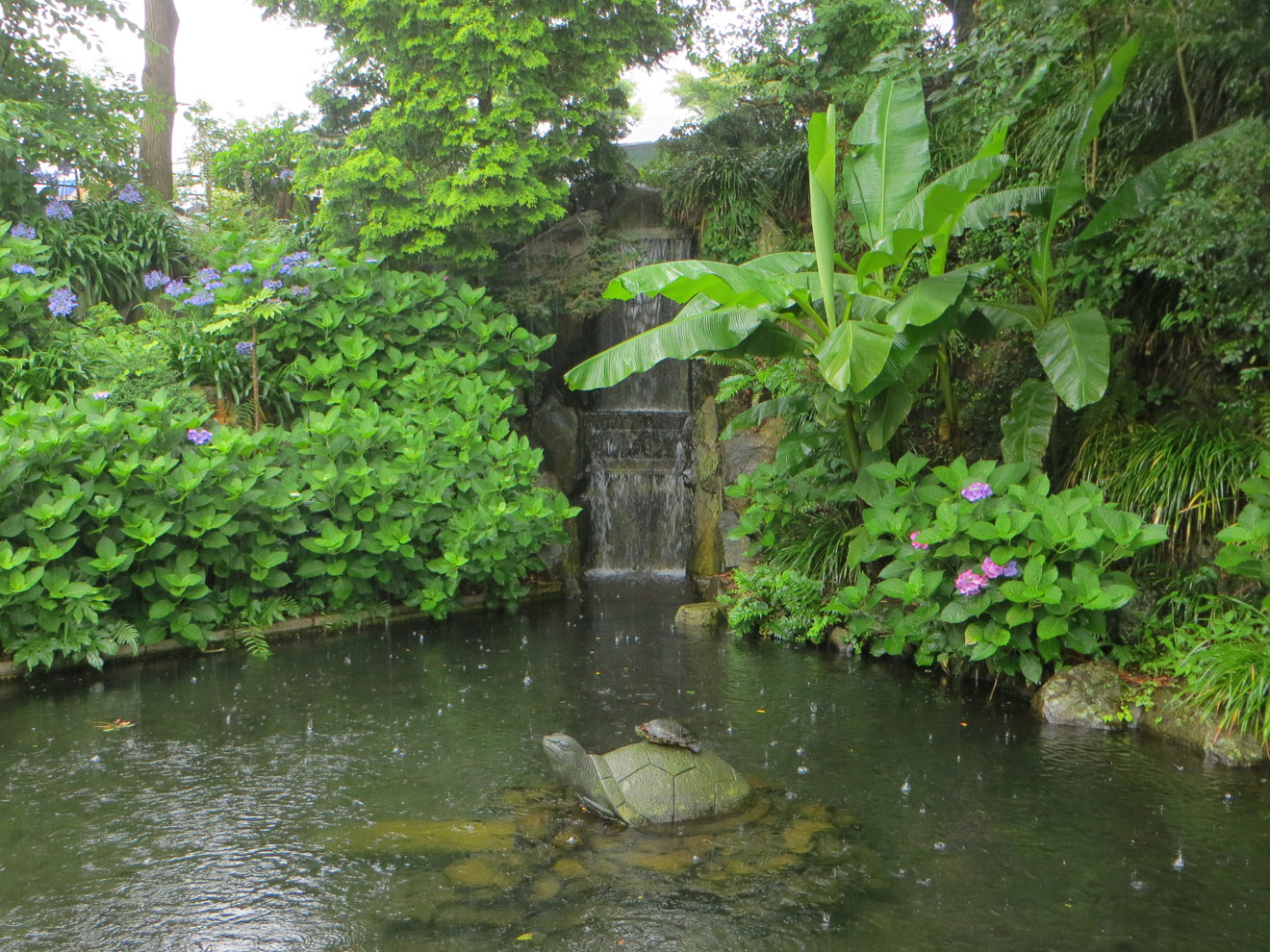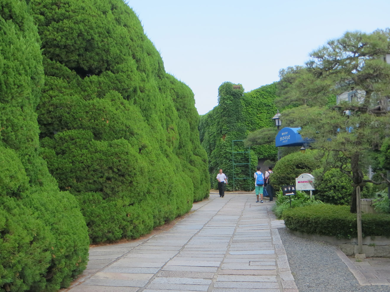 Since I wanted to be back in Tokyo in time for services on Saturday, I knew I'd have to go partway back tonight, so I checked out of my hotel and headed out. Actually, one of the reasons I decided to go to Kagoshima today, as opposed to earlier in the week, is because it's on the main Shinkansen line. In addition to the main places I wanted to see in the city itself, I also had a couple of optional things on my list, the first of which was a visit to Chiran. I had been thinking of skipping it, since it's kind of out of the way (there's no train station nearby, so you need to take an 80 minutes bus ride). You can save a few minutes by taking a local train halfway and then getting on the bus, which I did on the way there but, at best, you'd probably only save 15 minutes tops, so it's probably better to keep it simple and just take the bus all the way. Anyway, Chiran is a little town famous for its collection of samurai houses and gardens. When double checking the route, I saw a few pictures online and decided I really had to go, even if it would take several hours out of my day. As a side note, here's a photo I took on the way. I'm not so sure Ultra Man characters are the best choice to model summer clothes... So I got to Kagoshima, took the local train and then the bus, and finally arrived Chiran. It's a nice town and has a cool waterway running down the main street, there are actually koi in it. Anyway, after checking the times for the return bus, I got a ticket for the samurai gardens (FYI: you can't buy them at the gardens themselves, there's a couple of places selling them on the main street though). Anyway, during the Edo period Chiran was a samurai district (samurai were spread across the land in small groups to prevent the potential formation of large rebel groups and, being a small out of the way place, it survived pretty much intact. You can't go in any of the houses themselves because they're still inhabited, but seven of the gardens are open to the public. They're all small gardens, no walking trails or anything like that, but they're all diverse and extremely picturesque. Heck, it's practically worth going for the street itself, a lengthy stretch of stone walls and towering hedges. To enhance the atmosphere, no cars are allowed during the day. I went backwards (starting at garden number 7), though it really doesn't matter which way you go and that bus stop was closer to that end. So the first garden I reached was More Shigematsu's. It's the only garden to use water as an element. A bit further down the street I came to Sata Naotada's house and garden. It makes use of a stone mountain, a common feature in the area's gardens. Sato Tamiko's garden is right nearby, and is supposed to represent a mountain river. This isn't a samurai house, but it's a rather unique one. Sato Mifune's garden is the largest of the bunch and looks kind of like a distant mountain range with a stone waterfall. Continuing down the road, I reached the last set of gardens. Hirayama Ryoichi's garden is a rather unique one, entirely composed of flowering shrubs trimmed to resemble rolling hills. You can see inside a bit of the house too. Finally, Hirayama Katsumi's garden and Saigo Keiichiro's garden both use a mixture of stone hills and island like shrubs. After reaching the end of the road, I decided to head back to the start to get some lunch. Turns out that walking that way is even better, since you have the mountains in the background. Both my guide book and the pamphlet I got with my ticket recommended an hour to explore the seven gardens. That's about how long it took me for a fairly leisurely tour. However, while the buses usually run hourly, I arrived at the one time of day they don't, leaving me with a two hour wait instead. Well, that gave me plenty of time to get a nice lunch at a nearby soba place. As a side note, Chiran is also rather famous for its tea, which was pretty great. After lunch and another bus ride I ended up back in Kagoshima. Due to spending two hours in Chiran, I got there a bit later than planned and wasn't sure if I'd have time to see all three locations on my list, but I figured I'd have time for at least two. There's a couple of tourist buses that run in a loop around the city, hitting all the major attractions. As a note, the City View Bus was slightly cheaper but the other line (can't remember the name) was more English friendly. Taking the tourist bus was actually kind of fun, turns out there are a lot of interesting looking places in Kagoshima that weren't in my book. I'd rather like to go back there for another day sometime to take a better look around. The main stop on my list was Sengan-En, the garden of the Shimadzu family, the former lords of the area. It's fairly large and features a number of interesting elements. For example, the Shimadzu were a group that was instrumental to the modernization of Japan, both during and after the Edo period, and there are remnants of their work scattered about, like this hydro electric dam. There was also a kyokusui garden, which was for a party game (better known in China than Japan) where participants try to compose a poem before a boat carrying a cup of sake can float from one end of the stream to the other. And here we have something both traditional and practical, a water powered device used to thresh rice (turning brown rice into white rice). There's also a trail up a nearby hill, which gives you some nice views of Kagoshima and Sakurajima (a nearby island with a volcanic mountain with what are supposed to be some good hiking trails; I'll have to plan for a day there sometime as well). Admission to the garden includes the nearby museum (the second place on my list), which is all about the Shimadzu and their efforts to develop and introduce new technology to the country. There's a good bit of English, and it's pretty interesting stuff. By the time I finished, everything was about to close so I did have to skip my last planned s