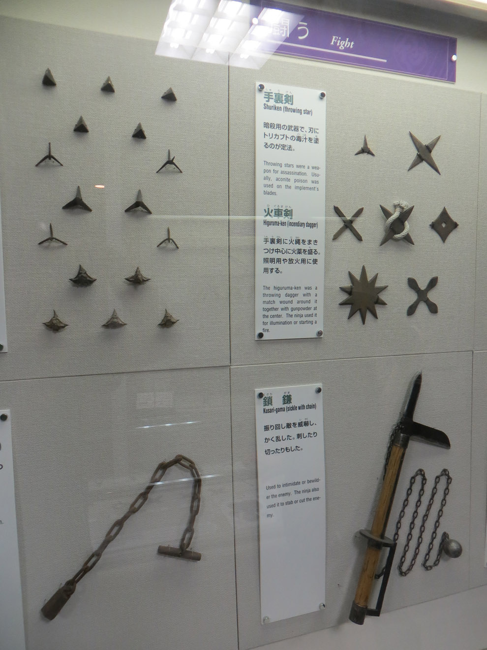 There are a couple of towns in Japan known for their historic connection to ninja, with related museums and buildings to tour. I've been wanting to go to one for ages but have never been in the right area. Well, I finally worked one of them into my travel plans. Iga Ueno was once home to the famous Igaryu ninja school. Before I begin I should probably mention that, while the main train station is called Igaueno (to differentiate it from Ueno in Tokyo), the town may be referred to as Iga or Ueno. Anyway, there's a local train you need to take from Igaueno station and I could already tell that they were going to be milking the ninja thing a bit. And it makes sense, the ninja house and museum are the area's main attractions, though there's also a castle and a few locations related to a famous Japanese poet named Matsuo Basho. Conveniently, the castle and ninja museum are located right near each other and you can get a combo ticket for both of them along with one other museum, which is what I did. The museum normally begins with a tour of the ninja house, but I had some time to kill before the next one started so I skipped ahead to the third hall, which focuses on the ninja lifestyle. Here, for example, is one kind of ninja outfit. Despite how often you see it on TV, they didn't usually wear black. The most common color was actually a dark blue since it blends into the night better and was also similar to what local farmers wore and the ability to disguise themselves was very important to the ninja. Another interesting ninja fact, they used to lay out colored grains of rice to send coded messages, though that was far from their only method. After looking at the displays for a bit it was time for the ninja house tour. I know that sounds like a corny amusement park attraction, but this is actually an authentic house once lived in by a ninja family. It appears to be a normal farmer's house, but is riddled with secret compartments and passages. Here's the guide making a quick entrance through a revolving part of the wall, and here she's making an even quicker escape through a hidden bolt hole. And, of course, you have to have a sword hidden under a floor board. As a side note, the reason for the blurring in these photos is that she was moving really fast (opening that panel and grabbing the sword took all of a second at most) and, while photos were allowed, video was not. After the tour, I moved down to the next part of the museum, which showcases the different equipment ninjas used such as these shoes which, unlike the old movie scene busted in Mythbusters, where used for crossing swamps, not water. And, of course, many different types of weapons. After that, I paid a few hundred yen extra to check out the ninja show, where members of a modern ninja clan (who focus on performing, not stealth missions) show off the use of various ninja weapons and combat techniques. Along with a few other tricks, like rolling a coin on an umbrella for luck. Once I was done at the museum, I headed over to Iga Ueno Castle. The current castle was rebuilt in 1935 and houses a small museum with a very impractical samurai helmet. There's also some decent views from the top though, as far as Japanese castle go, there's nothing all that special about it. Finally, I decided to check out the last destination on my combo ticket, the Danjiburi Museum, which focuses on a big festival held in the town every year. In addition to a parade of large portable shrines, the festival features a number of residents dressing themselves up as monsters. The video presentation on the festival had them scaring some babies, which was amusing, if a little mean. Anyway, it looks like a pretty big and interesting festival. Maybe I should try and go some time... While it wasn't all that late, I had a long train ride back to Tokyo so I headed out after I left the museum, bringing an end to the Osaka and surroundings portion of my trip. It was a lot of fun, and I'm looking forward to what comes next... |