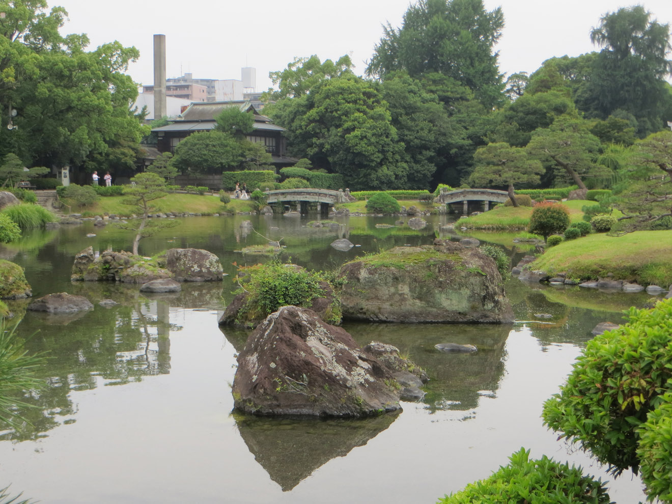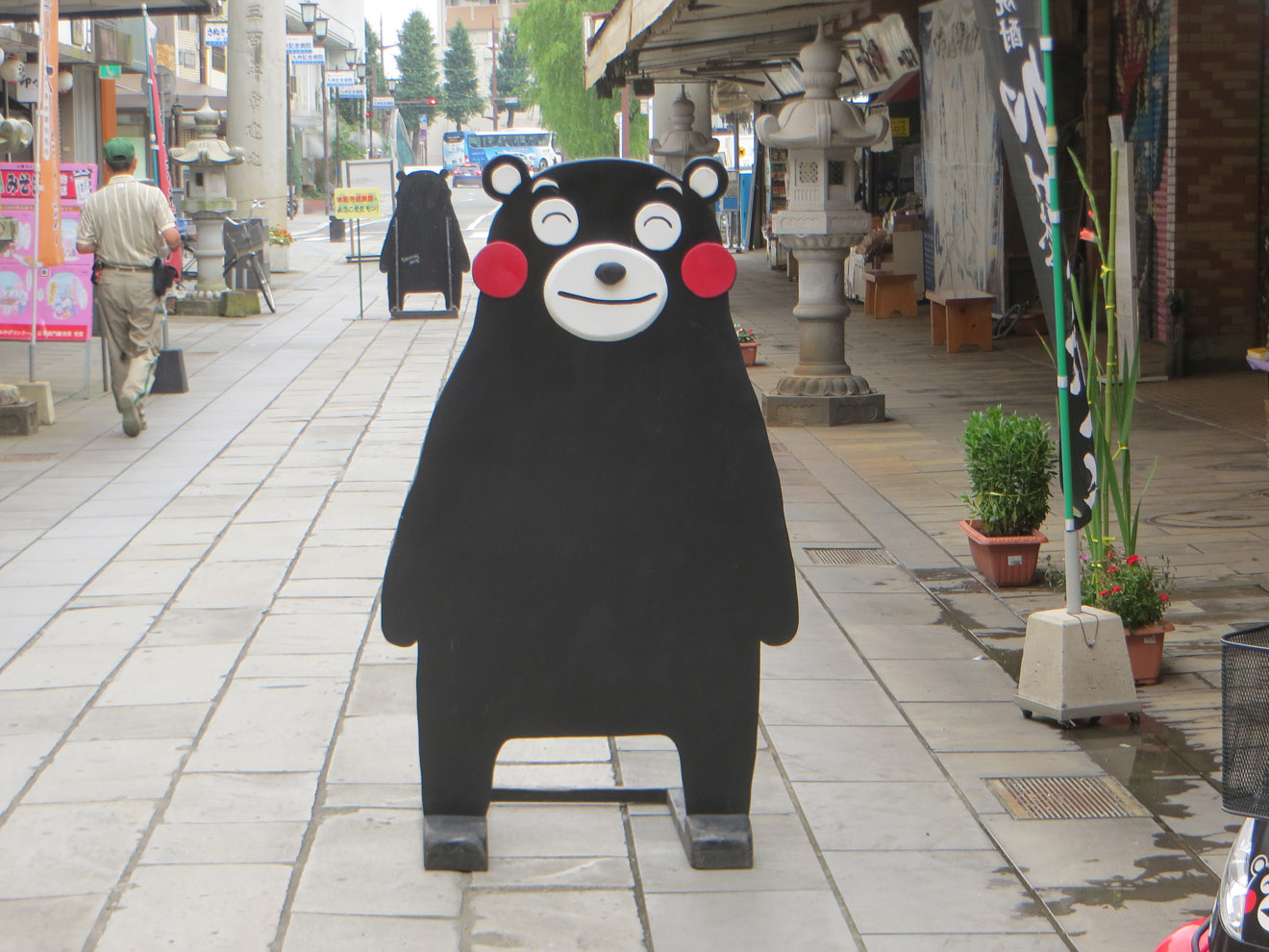 The one problem with my travel plans for Kyushu is that I actually have eight days of stuff to do and only six days to spend in the area. So, to that end, I decided to try and combine the shortest of my day trips with the rest of the things I wanted to see in Fukuoka into one day. So I got an early start and took the Shinkansen to the city of Kumamoto. My first stop in Kumamoto was Suizenji Garden, a famous landscape garden dating back to 1636 (though it continued to be developed for the next 80 years afterwards). It's actually designed to bring to mind the 53 stations of the Tokaido Road (the ancient road connecting Tokyo (then called Edo) and Kyoto). This hill, for example, is supposed to represent Mt. Fuji. While the garden isn't especially large (it's about medium size for a Japanese garden), there's a path which goes around the whole thing and, like most Japanese gardens, it's all about strolling around and appreciating it from many different angles. Anyway, it's a very nice garden and I really liked the simulated mountains. Leaving the garden, I passed down a small touristy street with vendors selling sweets made from sweet potatoes (a local specialty, and quite a good one). There was also lots and lots of stuff featuring Kumamon, Kumamoto Prefecture's official mascot (kuma being the Japanese word for bear). I think every prefecture has a cute mascot these days, but Kumamon is one of the most popular, to the point where a lot of the nearby prefectures sell Kumamon souvenirs as well. From there, I hopped on a street car (basically a trolly, or a small train that runs in the middle of the street) heading towards Kumamoto Castle. It's considered to be one of the more famous and beautiful castles in Japan. Unfortunately, much of it burned down during the Seinan Rebellion in 1877 so the main tower, and a number of the other buildings currently there, are reconstructions. That said, they're good ones, done using traditional materials and techniques. And, while most cities with reconstructed castles stop with the main tower, Kumamoto's restoration project (which has been running since 1998) seems to be aiming to eventually restore the majority of the castle complex. One of the first things you notice about Kumamoto Castle is its walls. There are several layers of walls, often creating a multi-level effect. There's also a number of turrets and other buildings standing atop the walls. This particular turret is one of the few buildings which survived the fire, making it an original. You can actually go inside and climb to the top for some views of the castle and its surroundings, though turret windows were clearly built for defensive purposes, not for good views. I was also able to go inside a reconstructed turret and a storehouse before passing through a large underground passage (an unusual feature) and emerging in front of the castle. If you're wondering about that samurai guy in the corner of the photo, there were a few employees walking around in traditional dress. The inside of the castle has a collection of items belonging to Kumamoto's former ruling families and some thing relating to the aforementioned rebellion. No pictures though, at least until you get to the viewing area at the top, which features excellent views of Kumamoto. Right now, they're restoring the palace right next to the main tower (castle towers weren't especially great to live in). It's part completed recreation and part museum explaining the restoration process. I found it interesting and some of the fully restored rooms were quite spectacular. Once I'd finished exploring the castle grounds, I set off on foot (stopping for a bit to chat with a nicer older man who wanted to practice his English), making my way to the Hosokawa-Gyobo Residence. They were a branch of Kumamoto's ruling family back in the day and had quite a mansion built. It's a good example of a high class samurai home and also traditional Japanese houses in general, especially if you've never been inside one. There are some rather unusual features as well. See the round window in this photo? Those are a Chinese design almost never seen in Japan and combining it with a Japanese shoji (paper) covering is quite unique. Having hit all my major Kumamoto sites, I headed back to Fukuoka a bit early so I could do some sightseeing there as well. Though I did end up stopping at a touristy area on the way to the train station for a late lunch. Back in Fukuoka, I immediately made my way to Tochoji Temple, which was actually right across from my hotel. The temple itself isn't anything too special (though it has a nice pagoda), but a side area contains the largest seated Buddha statue in Japan (even larger than the one in Kamakura, which you can go inside). It only dates back to 1988, but is still impressive. Having heard about it online, I made sure to check behind the Buddha, where there's a passage that circles around back. It start outs with a bunch of pictures of demons torturing people in hell, then gets completely dark for a stretch, at which point you're supposed to try and find a handle to get good luck (I did something similar way back when I visited Nagano). After that I checked out a few other shrines and temples. One even had a moment to the people credited with bringing the recipes for udon, soba, manju, and somen over from China long ago. I eventually reached the Folk Museum, which focused mainly on the area's annual festivals (one of which is coming up soon), and the Traditional Craft Corner, of which Hakata Ori (a traditional type of woven cloth) was the main focus. And, on my way to a shopping arcade for supper, stumbled across Kushida Shrine, where they're just starting the preparations for said festival. Too bad I won't be around for the parade. Speaking of that shopping arcade, one restaurant had a squid tank out front (guess what they served). I also snapped a picture of an amusing sign at the local Don Quixote store before calling it a night