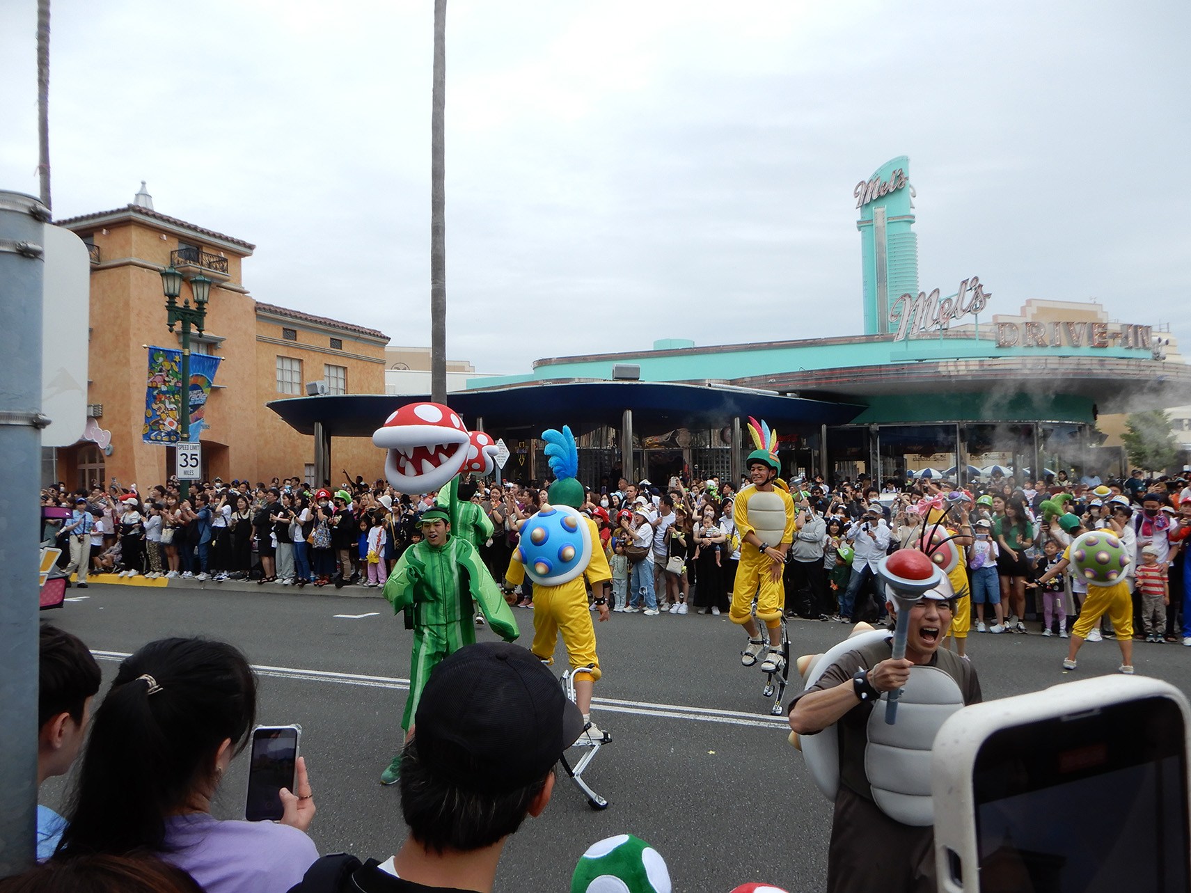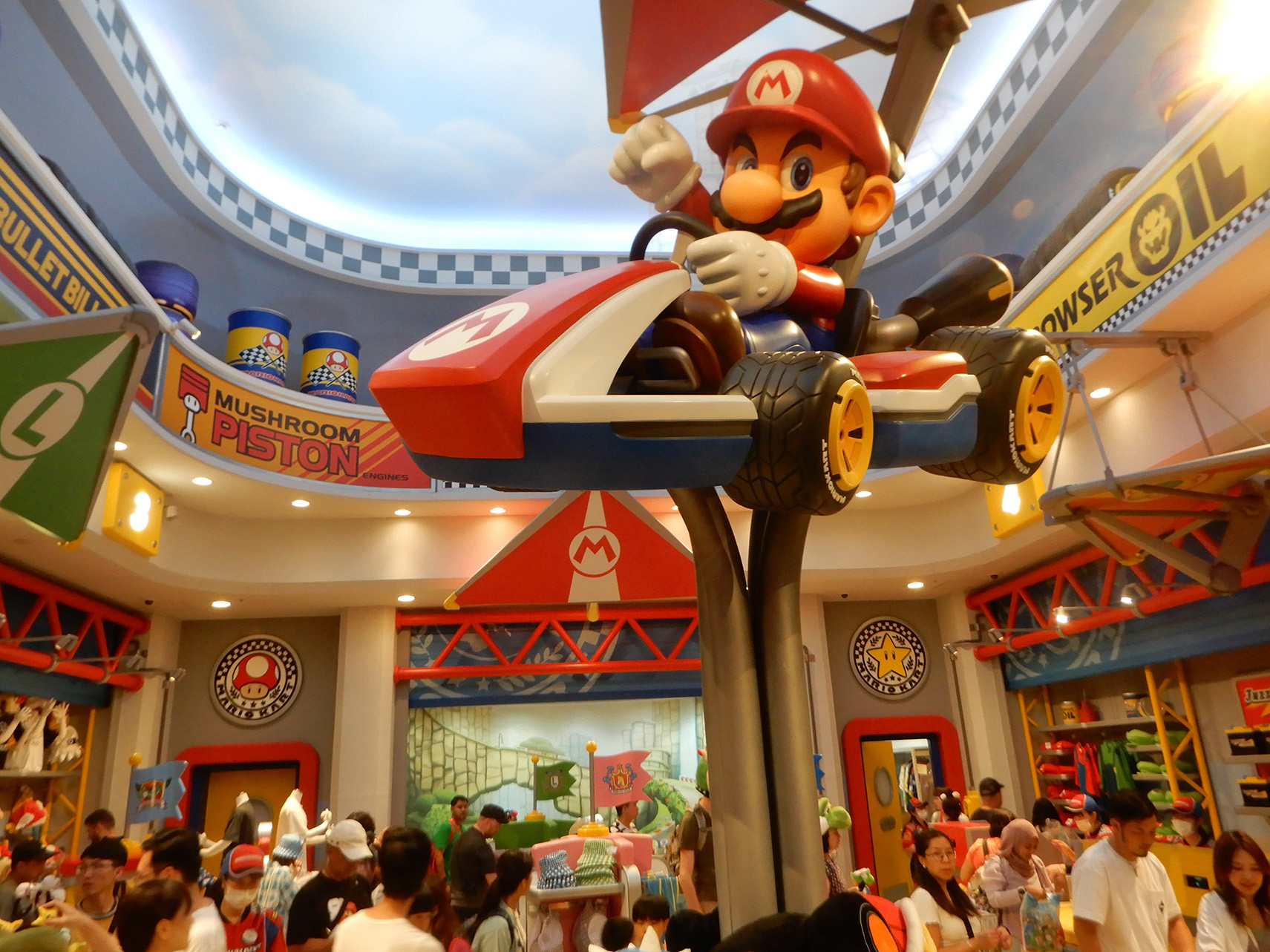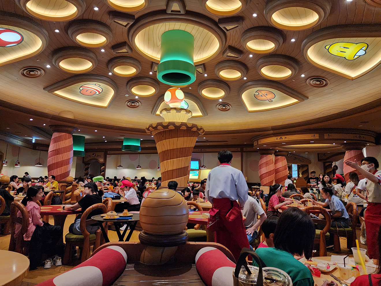 Anyway, due to high demand, the entrance to Super Nintendo World is time restricted. First you need to add your ticket (and those of the rest of your group) to the Universal Studios Japan app. Then, after scanning your ticket at the gate and entering the park, you can use the app to reserve an entry time slot for Super Nintendo World. Knowing all this, we got an early start and, despite a couple of slower students and an issue at the ticket gate (FYI: I would highly recommend printing your tickets) we made it in something like 30 - 45 minutes after the park opened at 9 AM. At that point, I immediately grabbed the earliest Super Nintendo World time slots available...at 3:30 PM. That tells you how high the demand is. And this was on a normal week day. So, with plenty of time to kill, we all split up and I set off to explore the park. Since it was my first time, and I really wanted to get a good feel for the place, I decided to focus on exploration rather than going on rides. That started with some of the gift shops near the entrance (in a sort of Hollywood themed area). Especially because of all the cool Mario merchandise. I also couldn't resist popping into this Mario themed cafe, which had some awesome collectable cups. Next up was a section clearly aimed at younger kids, combining several different franchises, both Japanese and American. Nothing there that really appealed to me, but young kids would probably love both the rides and the play area. After that was Harry Potter's Hogsmeade. It's basically a smaller version of the one in Universal Studios Orlando, but still has plenty of charm and manages to squeeze in a number of the same shops and rides as the original. Though the mixing of franchises could be a bit odd at times... Continuing on, I came across an entire area of the park themed around the movie Jaws. That struck me as over kill, though the themed snacks were rather amusing and the view across the lake was nice. It was followed by Jurrassic Park and then more Hollywood (or maybe part of it was New York?), with one alley dedicated to Dispicable Me. I should probably also mention that Universal Japan actually does play up its location quite a bit. Besides Super Nintendo World, it has a number of cross-over attractions focused on various Japanese anime, manga, and game franchises. Some (like Spy x Family) are special limited time events, while others (like Doraemon) appear to be permanent attractions. Fair warning though, the limited time events and attractions though often require a seperate paid ticket, some of which are rather expensive. Plus, buying those tickets requires either going back outside of the park to the main ticket windows, or using a special web site that not only lacks English but is pretty much impossible to create an account on if your phone doesn't have a Japanese language pack installed. So yeah, that whole process could use some work. After making it all the way around the park, it was time for lunch so I headed back to Hogsmeade to grab some food. And, since the wait wasn't overly long, I went on the Hogwarts ride as well. Pretty much identical to the one in Orlando, but considering how great of a ride it is, I can't really complain. Then I headed back to the main street to watch the afternoon parade. Which, like the park itself, features an interesting mix of franchises from Dispicable Me to Mario (actually, about half the parade was Mario Kart themed). And, while there isn't a section in the park for it (not yet at least), Pokemon had a notable presence as well. That was fun, and I still had a little time to kill so I hopped on the Jaws ride, which ened up being much better than I expected. Finally it was time to meet up with the rest of the group and head into Super Nintendo World. After showing our timed entry passes, a lot of us (myself included) waited in line to by power-up bands. (FYI: If you don't mind waiting a little bit to buy your band, every shop in Super Nintendo World has them and many have shorter lines.) While the bands (which are are themed after various Mario characters) aren't strictly neccessary, and cost around $23 each, they really do add a lot to the experience (more on that later). After buying bands, it was through the warp pipe and into Super Nintendo World proper... And wow... It's not really that big, but it's densely packed, full of neat little details, and looks absolutely fantastic. If you have a power-up band, you can wear it on your wrist like a watch and interact with all sorts of stuff in the park. Even wanted to punch blocks for coins (some of which you actually have to duck or jump for)? Look through binoculars for hidden Mario characters? Play music on note blocks? Get a present (hopefully containing a power-up) in a toad house? You can do all that and more. There's also four mini-games you can play which involve beating various enemies (goomba, koopa trooper, etc.). Completing each one earns you a key. Get three keys, and you can access a special bonus mini-game where you and a group of other players have a show-down with Bowser Jr. I tried the thwomp based tile flipping game first, but lost. Which you don't really want to do considering that each mini-game required waiting in line to play. After that, I decided to save the others for later and prioritize some other attractions. First up, the main event, an AR based Mario Kart ride inside Bowser's castle. You wear an AR visor and through a mix of digital characters and animamatronics, you drive, drift, and toss shells at the enemy racers. It's fun and really well done. Your band also tracks your score and progress. Yes, score and progress. Aside from letting you interact with things, your band has a QR code you can scan in the Universal Studios app which will then display your progress through the park. You can earn a large number of stickers (achievements) by completing different tasks around the park, on the rides, and the like. It even keeps a running tally of