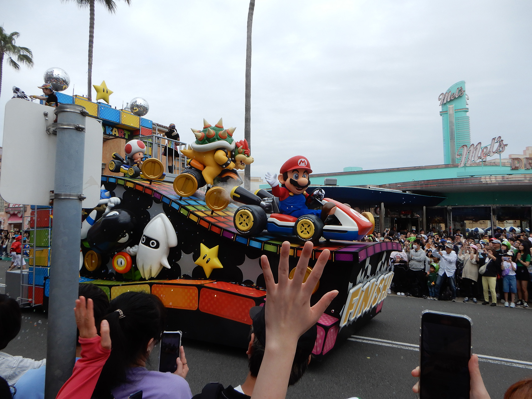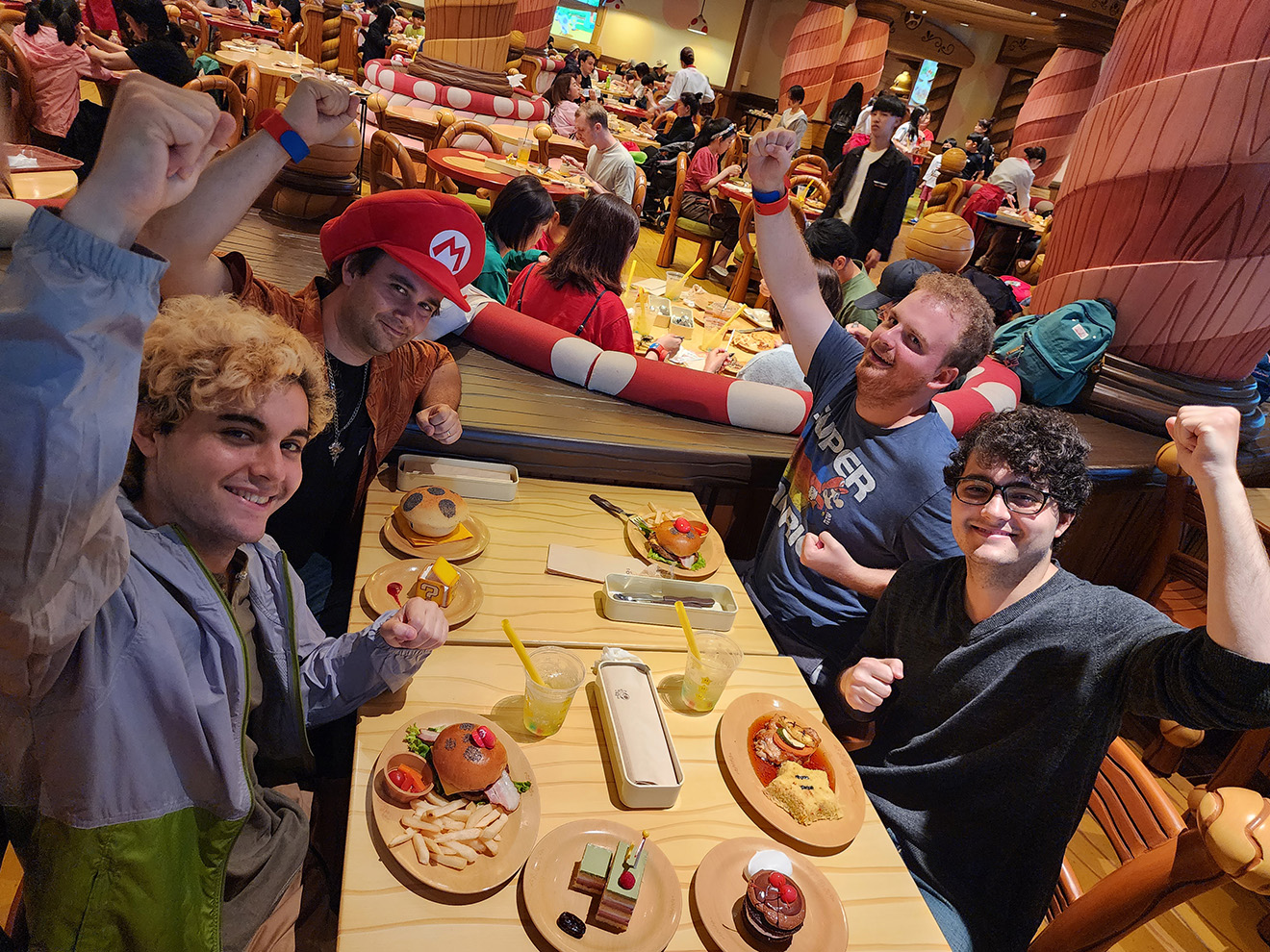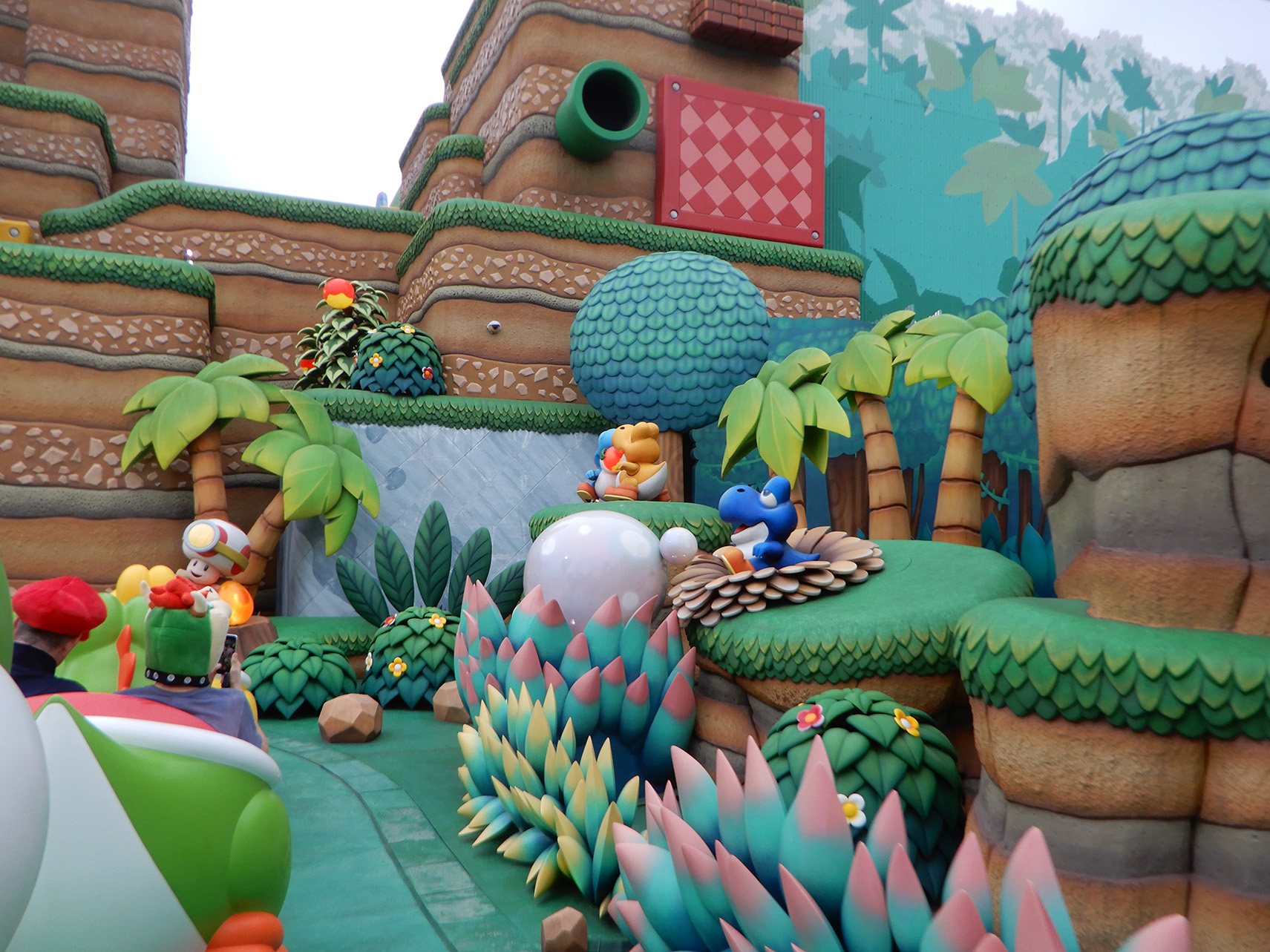Anyway, due to high demand, the entrance to Super Nintendo World is time restricted. First you need to add your ticket (and those of the rest of your group) to the Universal Studios Japan app. Then, after scanning your ticket at the gate and entering the park, you can use the app to reserve an entry time slot for Super Nintendo World. Knowing all this, we got an early start and, despite a couple of slower students and an issue at the ticket gate (FYI: I would highly recommend printing your tickets) we made it in something like 30 - 45 minutes after the park opened at 9 AM. At that point, I immediately grabbed the earliest Super Nintendo World time slots available...at 3:30 PM. That tells you how high the demand is. And this was on a normal week day. So, with plenty of time to kill, we all split up and I set off to explore the park. Since it was my first time, and I really wanted to get a good feel for the place, I decided to focus on exploration rather than going on rides. That started with some of the gift shops near the entrance (in a sort of Hollywood themed area). Especially because of all the cool Mario merchandise. I also couldn't resist popping into this Mario themed cafe, which had some awesome collectable cups. Next up was a section clearly aimed at younger kids, combining several different franchises, both Japanese and American. Nothing there that really appealed to me, but young kids would probably love both the rides and the play area. After that was Harry Potter's Hogsmeade. It's basically a smaller version of the one in Universal Studios Orlando, but still has plenty of charm and manages to squeeze in a number of the same shops and rides as the original. Though the mixing of franchises could be a bit odd at times... Continuing on, I came across an entire area of the park themed around the movie Jaws. That struck me as over kill, though the themed snacks were rather amusing and the view across the lake was nice. It was followed by Jurrassic Park and then more Hollywood (or maybe part of it was New York?), with one alley dedicated to Dispicable Me. I should probably also mention that Universal Japan actually does play up its location quite a bit. Besides Super Nintendo World, it has a number of cross-over attractions focused on various Japanese anime, manga, and game franchises. Some (like Spy x Family) are special limited time events, while others (like Doraemon) appear to be permanent attractions. Fair warning though, the limited time events and attractions though often require a seperate paid ticket, some of which are rather expensive. Plus, buying those tickets requires either going back outside of the park to the main ticket windows, or using a special web site that not only lacks English but is pretty much impossible to create an account on if your phone doesn't have a Japanese language pack installed. So yeah, that whole process could use some work. After making it all the way around the park, it was time for lunch so I headed back to Hogsmeade to grab some food. And, since the wait wasn't overly long, I went on the Hogwarts ride as well. Pretty much identical to the one in Orlando, but considering how great of a ride it is, I can't really complain. Then I headed back to the main street to watch the afternoon parade. Which, like the park itself, features an interesting mix of franchises from Dispicable Me to Mario (actually, about half the parade was Mario Kart themed). And, while there isn't a section in the park for it (not yet at least), Pokemon had a notable presence as well. That was fun, and I still had a little time to kill so I hopped on the Jaws ride, which ened up being much better than I expected. Finally it was time to meet up with the rest of the group and head into Super Nintendo World. After showing our timed entry passes, a lot of us (myself included) waited in line to by power-up bands. (FYI: If you don't mind waiting a little bit to buy your band, every shop in Super Nintendo World has them and many have shorter lines.) While the bands (which are are themed after various Mario characters) aren't strictly neccessary, and cost around $23 each, they really do add a lot to the experience (more on that later). After buying bands, it was through the warp pipe and into Super Nintendo World proper... And wow... It's not really that big, but it's densely packed, full of neat little details, and looks absolutely fantastic. If you have a power-up band, you can wear it on your wrist like a watch and interact with all sorts of stuff in the park. Even wanted to punch blocks for coins (some of which you actually have to duck or jump for)? Look through binoculars for hidden Mario characters? Play music on note blocks? Get a present (hopefully containing a power-up) in a toad house? You can do all that and more. There's also four mini-games you can play which involve beating various enemies (goomba, koopa trooper, etc.). Completing each one earns you a key. Get three keys, and you can access a special bonus mini-game where you and a group of other players have a show-down with Bowser Jr. I tried the thwomp based tile flipping game first, but lost. Which you don't really want to do considering that each mini-game required waiting in line to play. After that, I decided to save the others for later and prioritize some other attractions. First up, the main event, an AR based Mario Kart ride inside Bowser's castle. You wear an AR visor and through a mix of digital characters and animamatronics, you drive, drift, and toss shells at the enemy racers. It's fun and really well done. Your band also tracks your score and progress. Yes, score and progress. Aside from letting you interact with things, your band has a QR code you can scan in the Universal Studios app which will then display your progress through the park. You can earn a large number of stickers (achievements) by completing different tasks around the park, on the rides, and the like. It even keeps a running tally of