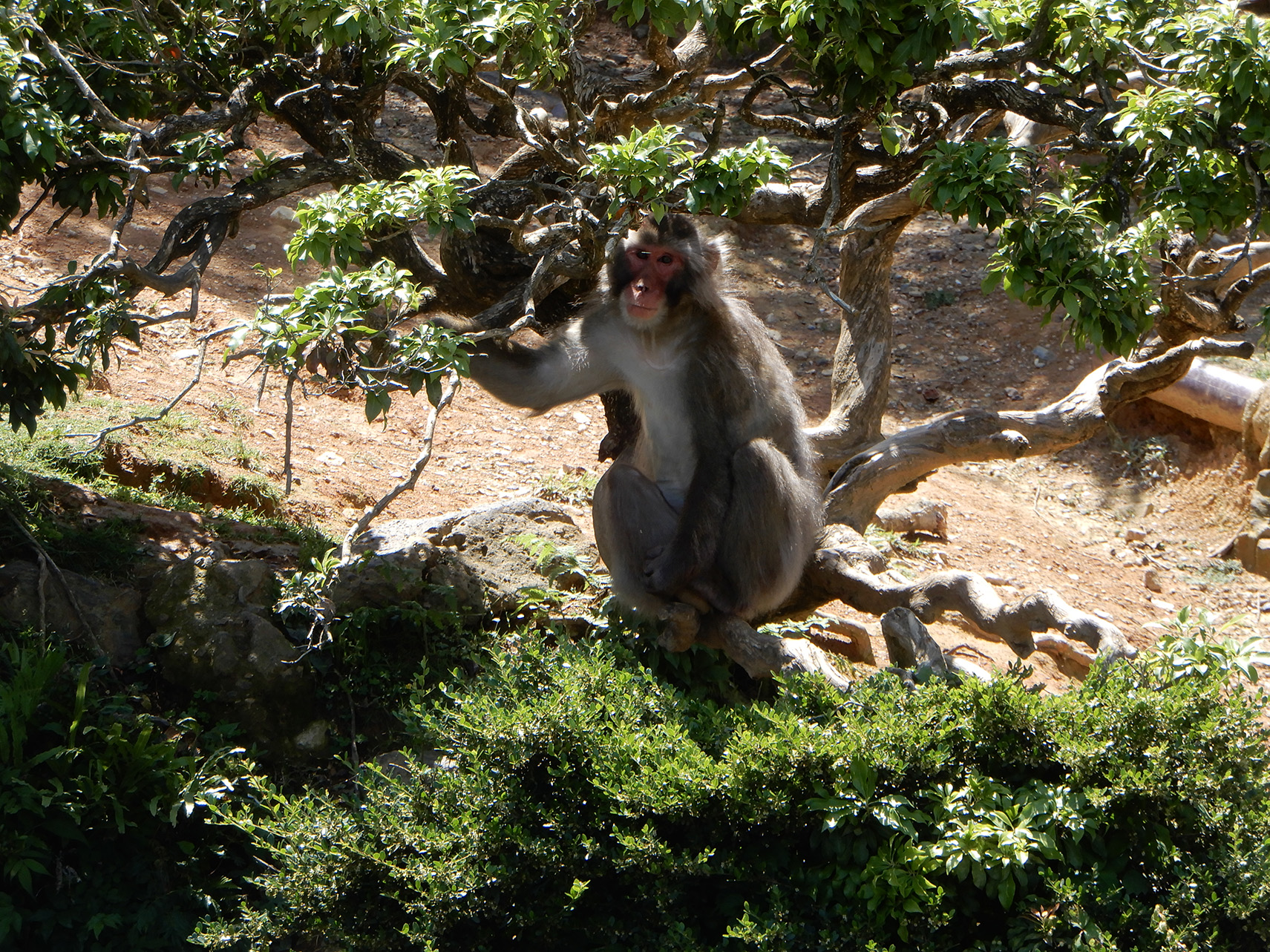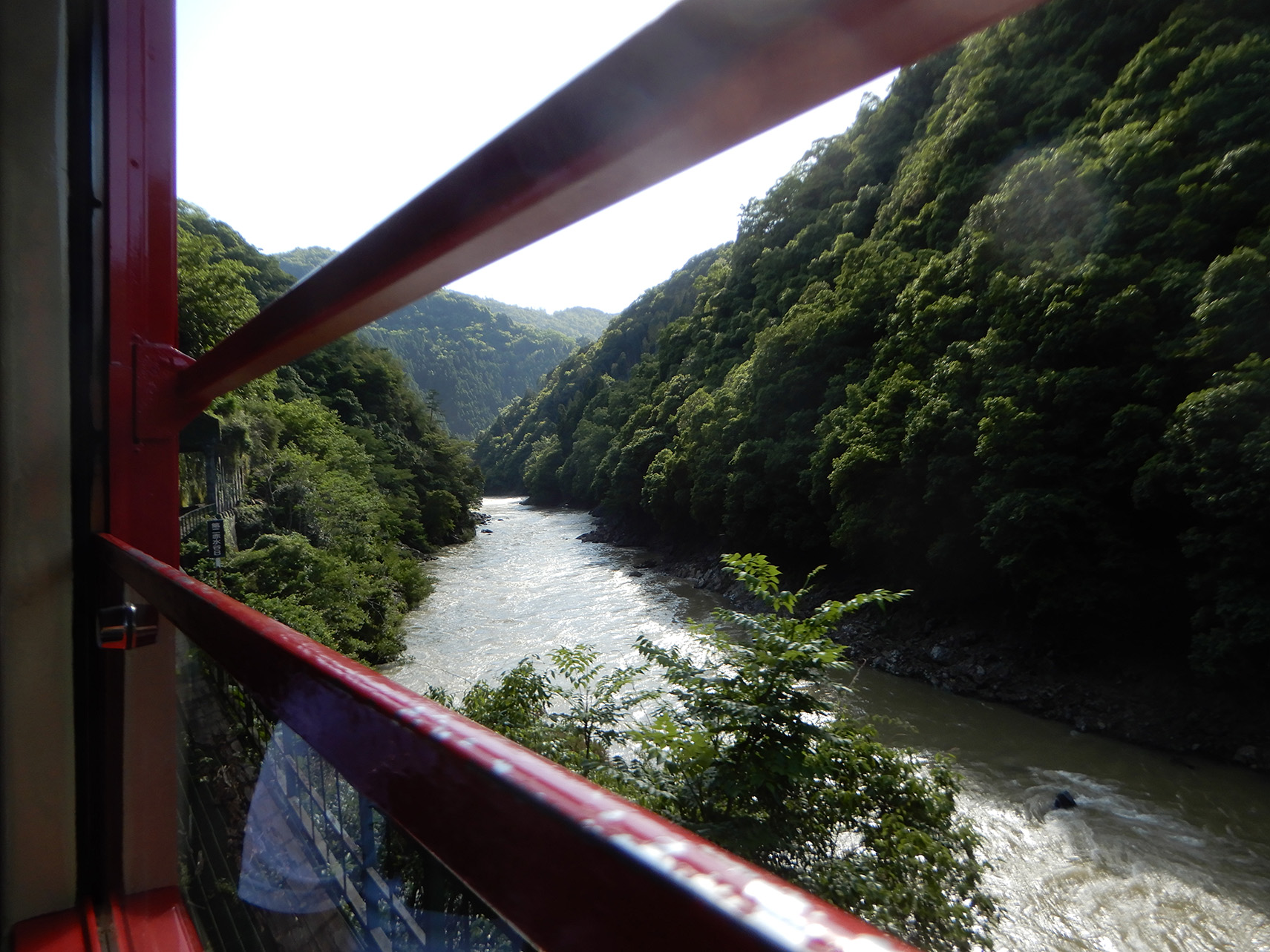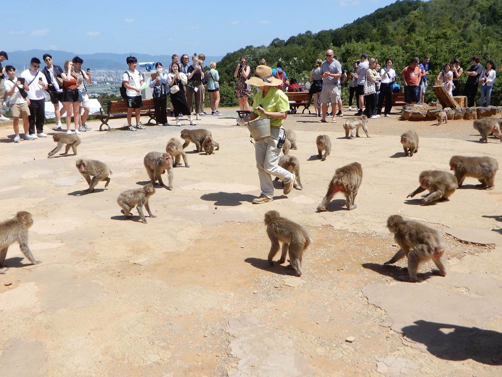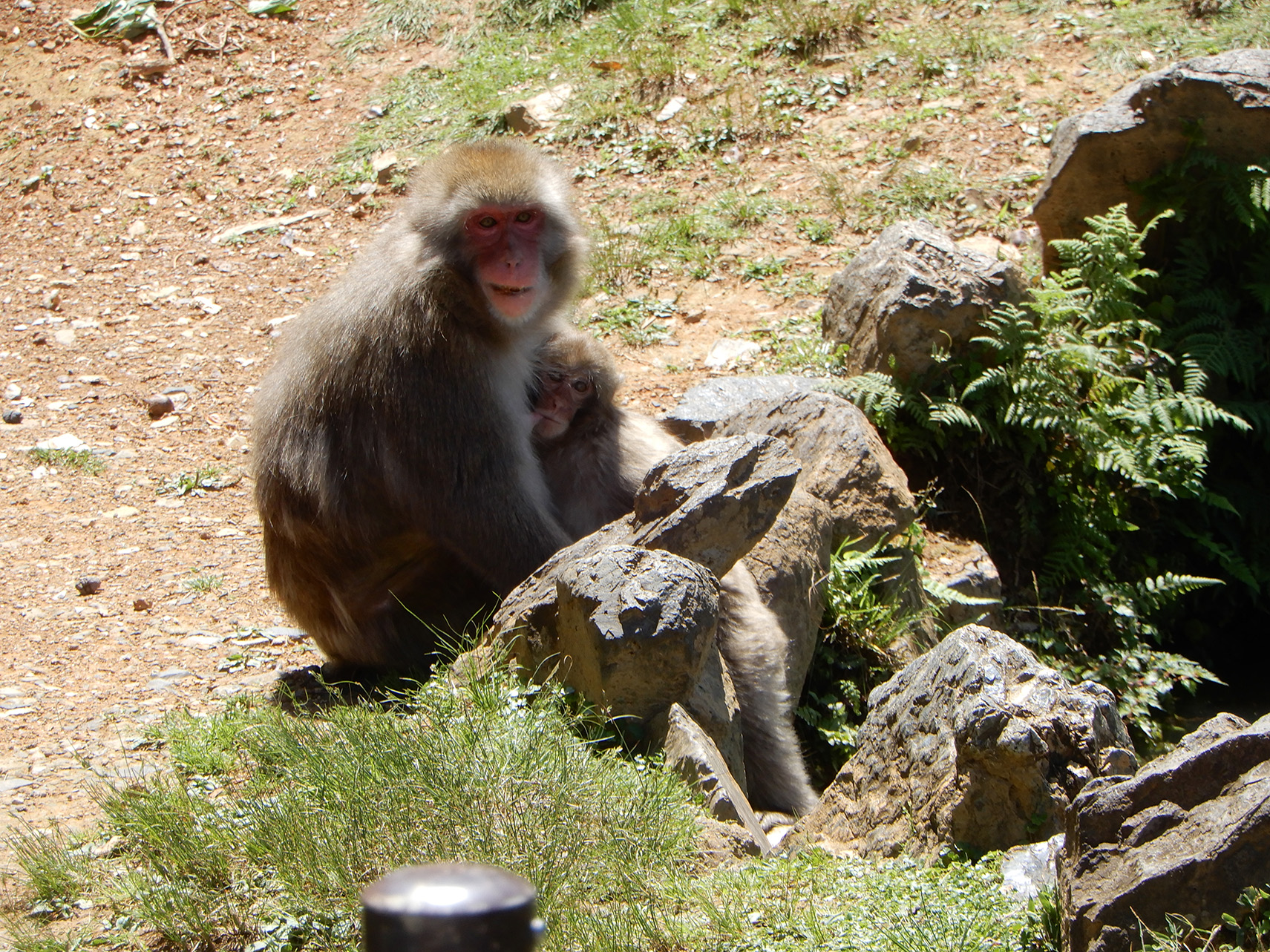 While there were more temples further down the road, we decided it was time to backtrack and visit the southern part of Arashiyama. By the time we got to the main road (lined with all sorts of shops and restaurants) it was just after lunch time and the area had been flooded with weekend tourists. Continuing on through the crowds, we came to the Katsura River (the same one going through that gorge earlier). It's surprisingly wide to begin with, but was even more swollen due to all the rain the previous day. Our destination was another of Arashiyama's major attractions, the monkey park. It begins with a 20 minute climb up hill which, other than monkeys, also leads to a fantastic view of Kyoto (one of the best I've found). As for the monkeys, they're Japanese snow monkeys (the same type I've seen both at Jigokudani and Yumoto Onsen). There's a pretty large wild troop that lives in the area and they're very used to humans so, as long as you don't bother them, they're perfectly happy to ignore you and go about their own business. They do get rewards for it though. Every now and then someone will come through with a bunch of food. You can also pay a small fee to feed them yourself, though you have to stand on the other side of a wire mesh and are just supposed to set the food (apples or peanuts) down for them to grab. Still fun though. Once we'd taken in the view and watched the monkeys for a while, it was time to get back down the mountain. One more thing that Arashiyama is known for is its sightseeing train, and we still had some time so we decided to give it a go. It's an old style train running on what had been an old unused section of track that winds its way along the river and through the gorge. The ride takes about half an hour and, while you can get off in a small town at the end (which also serves as the starting point for a longer scenic boat ride), a lot of people just ride the train back again, which is what we did. And then it was back to Kyoto proper to rest up, grab dinner, and pack up for tomorrow's trip. |