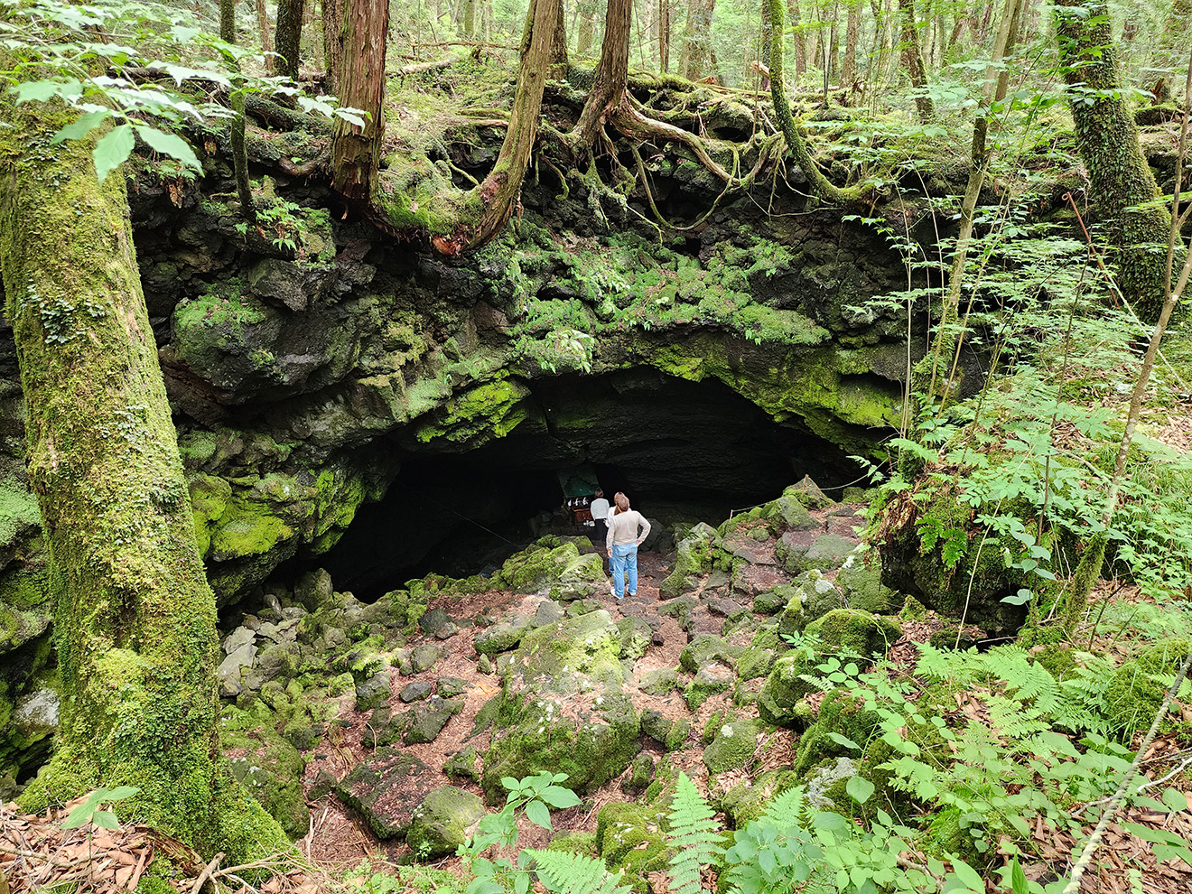 Unfortunately, the weather forcast for the next few days is rather iffy, so we decided to focus on the higher priority items on my sightseeing list on the better days, like today. Since this hotel is supposed to provide a slow, relaxing experience, breakfast isn't served until 9, which is a bit on the late side for us (gives you time to sleep in and appreciate the morning view). It's also a pre-set menu with a lot of small items but they bring most of them out at the same time so it only takes 45 - 60 minutes, rather than two hours. But the food was good and it's ok to take things slow sometimes. The hotel also asks you for estimated departure and return times for the day, what type of room cleaning you would like, if you need a taxi, and some other stuff about your plans for the day. Eventually we headed out to catch a bus. The Fuji Five Lakes areas has a pretty nice network of sightseeing busses which stop at most of the more notable locations around the lakes. That said, the busses that go to the more distant and less developed lakes may only stop once every hour or two. As a note, while Google Maps has never given me incorrect information about a bus in Japan, it also tends to miss some of the scheduled times so there's often an earlier bus available that it fails to show me. Anyway, we headed over to the next lake to the west, Lake Sai (or Saiko). It's a lot smaller than Lake Kawaguchi and not nearly as developed. However, other than the lake itself, there's several popular atractions nearby, including a set of lava tube caves. The first one the bus reaches is the Bat Cave, so named because it's the home of several types of bats. They give you a helmet when you buy your ticket, after which it's a short walk through a very scenic forest to the cave entrance. As previously mentioned, it's more of a lava tube than a proper cave. So, like most lava tubes, it's a relatively straight and round passage without much in the way of formations, other than the waves of hardened lava. As we progressed, it soon became obvious why they gave us helmets. The ceiling frequently gets very low. Never to the point where I needed to crawl, but I did have to crouch down and shuffle for quite a bit. Personally, I enjoyed it, though some people would likely have issues. There was an alternate path marked something like basic course which had fewer low areas. We didn't see any bats, but there were some doors blocking off access to the deepest parts of the cave where they live (probably best if they don't have people interrupting their sleep). Aftering making a loop through the cave, we took a quick look in a little museum they have there. It mostly focuses on some local fish for some reason, but there's also a room of Batman movie posters, because "Bat Cave" and all. Since the busses around Lake Sai only run around once per hour, it made more sense to walk to the other caves. Next up, the Dragon Cave. It was a bit out there and only had a couple small signs marking the start of the trail. You can't actually enter the cave itself (so there's no admission or anything) but you can go down in the crater where there's a small Shinto shrine. Continuing along the road for another 15 minutes or so, we reached the Wind Cave. While not as big as the Bat Cave, it seems to be pretty popular and we ended up arriving just behind a big school group. It's another lava tube, though a fairly short one that doesn't require much ducking or crouching. The Wind Cave also has a lot of ice in it, though most of that isn't naturally occuring but was brought in from the nearby lake and mountains during the winter for storage. In fact, the cave was once used to store silk worm cacoons and tree seeds in order to delay their growth and allow for multiple harvests during the year. Tickets for the Wind Cave are sold in a combination with the nearby Ice Cave (nevermind that the wind cave also had ice). You can get there via a short walk along the road, or a longer trail through the forest. Once again, we ended up in the middle of a big school group. Anyway, the Ice Cave also has ice, and the inside of the cave naturally stays at right about freezing all year around. It's another rather short one, but has steeper stairs and lower ceilings than the Wind Cave. While none of the four were more traditional caves with stalagmites and the like, they were fun to visit and made for an intersting way to pass a few hours. Though if you had to only pick one, I'd probably go with the Bat Cave, as it's the largest and most complex. By the time we'd finished with the cave, it was about time to head back so we caught a bus back to Kawaguchiko Station and then went back to our hotel for another big fancy dinner. |