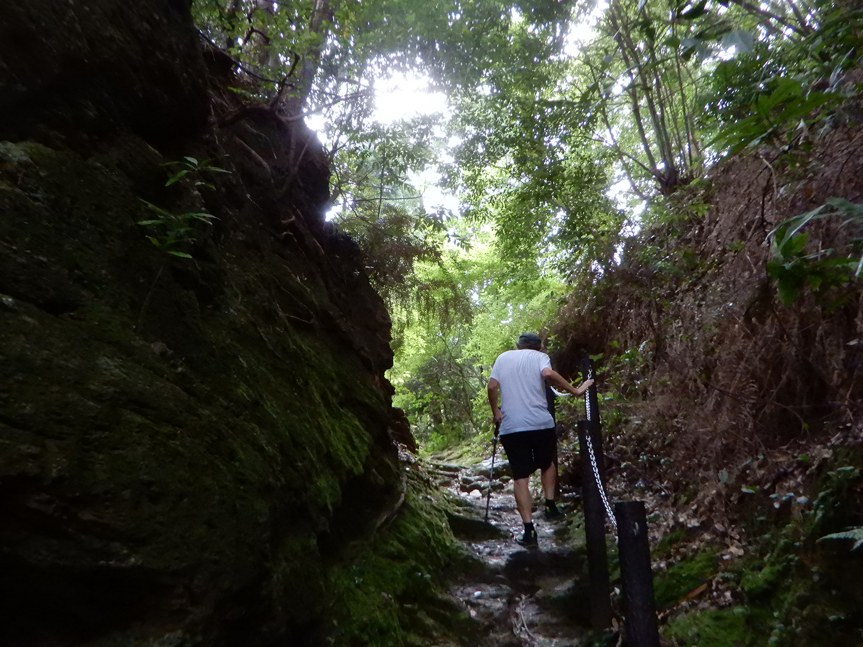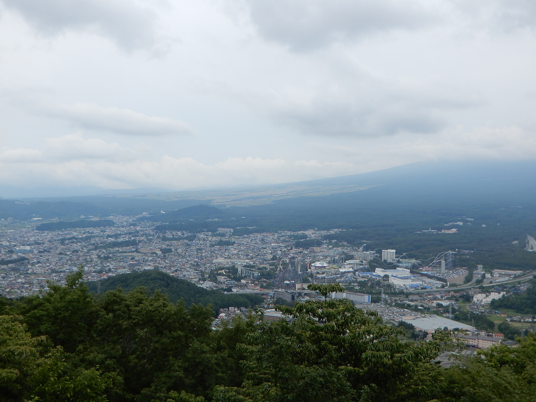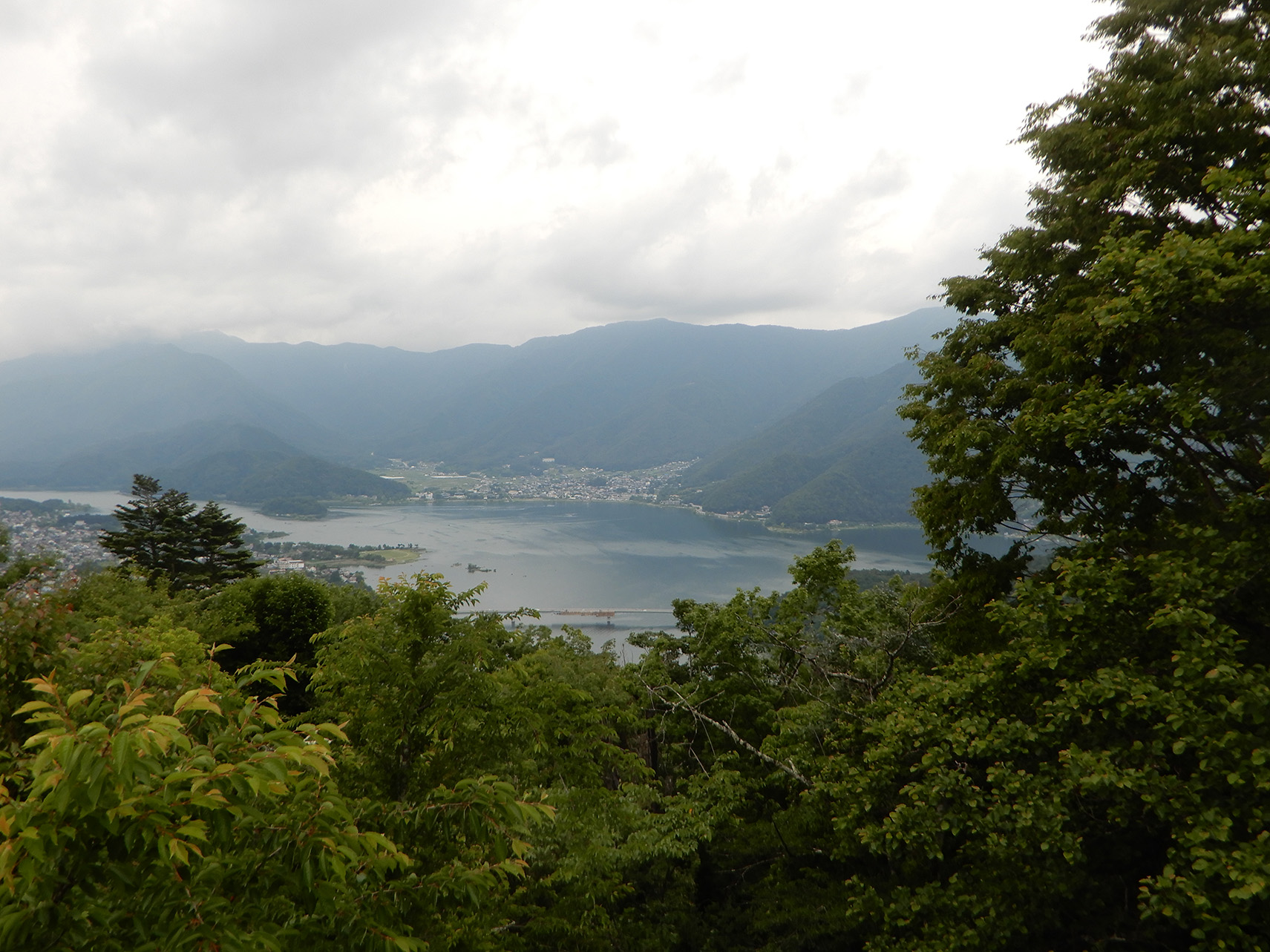 The way the weather report looked, this could very well be our last day of decent weather before we leave Fujikawaguchi so we decided to do a hike. To start, we took a bus to the Mt. Fuji Panoramic Ropeway. Note that, despite the name, the ropeway does not go up (or even get anywhere near) Mt. Fuji. It's also pretty popular and tends to get long lines. The line moved quickly, but we still ended up waiting for quite a while before we were able to ride up the mountain. From up top, you get some nice views of Lake Kawaguchi and Fujiyoshida (the next town over). Normally, there would probably be nice views of Mt. Fuji as well, but it was completely hidden in clouds for most of the day. There's also a couple of shrines and some gimmicky attractions. But the main reason we went up was to reach the start of the trail to Mt. Mitsutoge. It winds over forest covered mountains and eventually to the top of Mt. Mitsutoge, which is supposed to have great views. At which point you could backtrack to the ropeway or take one of several other paths down the mountain. Unfortunately, we didn't make it that far. The path is long and has a lot of ups and downs and may dad, while doing really well for his age, was a bit worn down after a couple of weeks full of lots and lots of walking. As such, we eventually decided to turn around. As a note, unless you're sure that you'll be able to go all the way, I wouldn't especially recommend the Mt. Mitsutoge hike. There don't really seem to be any views until you reach the summit and the forest you hike through, while fine, isn't especially scenic or anything either. Still, we had a nice enough time and we got to listen to the cicadas.