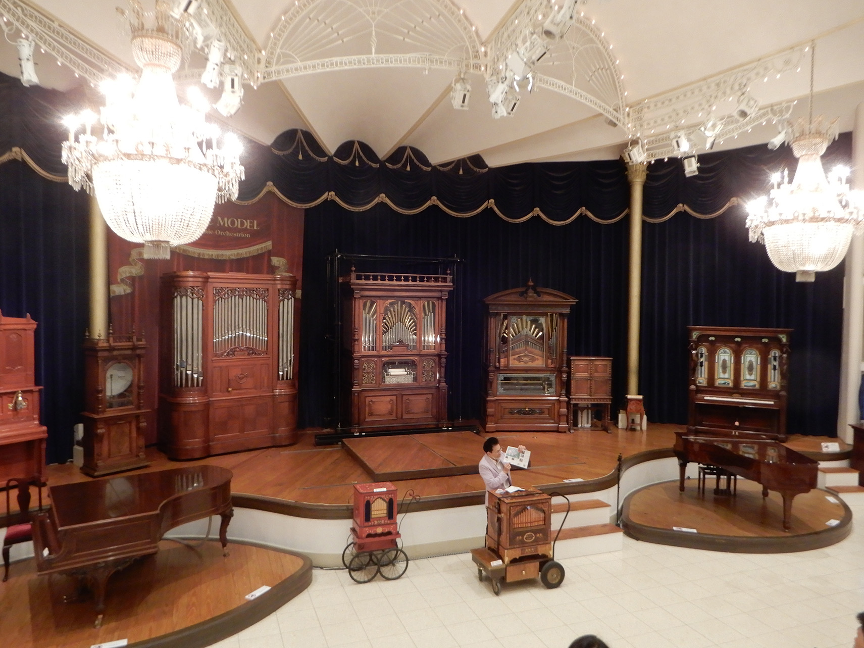 The forecast said rain all day so we need some activities that would be mostly indoors. Fortunately, the area around Lake Kawaguchi features a very large number of museums (a few of which we visited on previously days). Though, depending on your preferences, a lot of them may not sound especially interesting. One of the more popular ones is the Music Forest Museum, which is also not far from our hotel. Just from looking at it online, I was having a hard time figuring out exactly what it was, but it looked like it might be interesting so we decided to give it a try. The museum features a large rose garden that leads into a picturesque Eurpean style village of sorts. Which also features a statue by Salvador Dali for some reason. While the museum does have some exhibits, a big part of the experience is the various performances, which run for around 20 minutes each and are timed so you can easily go from one to another. So, soon after entering, we headed into an elaborately decorated concert hall for a "Titanic Concert." At that point, we still didn't really know what to expect. As it turned out, the concert, and the museum as a whole, focuses on old automated music players. Music boxes, music playing automata, and the like. For example, in that previous photo, all the devices you see on the stage fit that description. There's a couple that are hand cranked, but most play on their own. They're generally around 100 years old, give or take. The concert featured an introduction to several of those devices, and it was explained how similar ones were used on the Titanic (there were monitors which provided a nice English summary of the Japanese speech). But the "star" of the show was a large automatic organ that actually was supposed to have been placed in the first class lounge on the Titanic. However, for reasons now unknown, plans were changed and it was left behind in favor of a live band. Pretty interesting stuff and the music players themselves are rather brilliantly designed. They all sounded great as well, which is impressive considering how hard it must be to maintain them given their age and complexity. Next, we headed to the nearby Organ Hall for the Sand Art Concert. Turns out that the Organ Hall is so named because the main chamber is basically a giant automated organ designed for a dance hall. That was cool, but it was just the opening act. The Sand Art Concet featued the story of Cinderalla conveyed via live music and some truly amazing sand art. Then it was back to the concert hall to hear some different automated music players, this time accompanied by a live opera singer. On a side note, it's kind of odd that the first time I ever saw Italian opera music performed live ended up being in Japan... Once that show was over, we took some time to look at the museum's collection of music boxes and automata, from the more traditional to the overly elaborate. We also took in the shops, including a small Ghibli Store (which honestly is a rather good fit) and a huge store filled with every type of music box you can think of (including ones that played JPop and the themes from Ghibli movies). And we didn't forget to stop and smell (and photograph) the roses and take in the musical fountain show. Over all, the Music Forest Museum really impressed me. From the atmosphere to the performances, everything was top notch and I'd say that it's really a can't miss attraction if you visit Lake Kawaguchi.