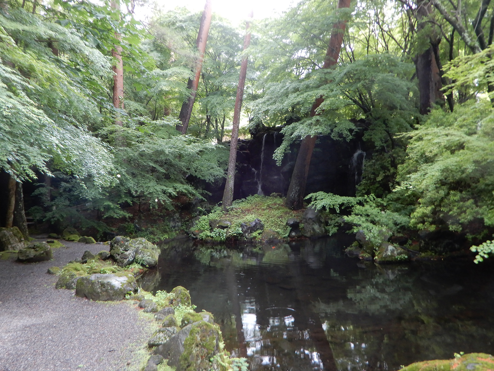 After that, my dad and I got a bus to Kawaguchiko Station. From there, we could have taken another bus to our next destination, but there would have been a pretty long wait and it was only a 20 minute walk. Plus, the rain has lightened considerably so we made our way through some residential areas to the Fujisan World Heritiage Center, a free museum focused on Mt. Fuji. One half is about the geology and such of the mountain while the other (which is the larger and more interesting section) is all about the historical and cultural significance of the mountain. It's all very nicely done and everything has English translations. It's an interesting way to spend an hour or so and the cafe had some very unique looking Mt. Fuji themed items (though I didn't get anything). After walking back to the station we still had some time to kill so we decided to make one last stop at the Itchiku Kubota Museum, which is actually right by our hotel. You enter through a fancy gate which leads into a very pretty garden before reaching the museum itself. Unfortunately, photographs aren't allowed from that point on, but the buildings and grounds are very interestingly designed. Itchiku Kobuta was a famous textile artist, best known for his work designing and dying kimono. His later pieces are more works of art than they are clothing and the museum contains a number of his most famous creations, along with an ecclectic mix of art and artifacts from around that world that he had collected. It's a very nice museum, and the kimono are impressive, but it's also pretty small so depending on your tastes it might not be worth the ticket price. In the end, we still ended up back at the hotel a little earlier than usual, but it was a pleasant and relaxing day. |