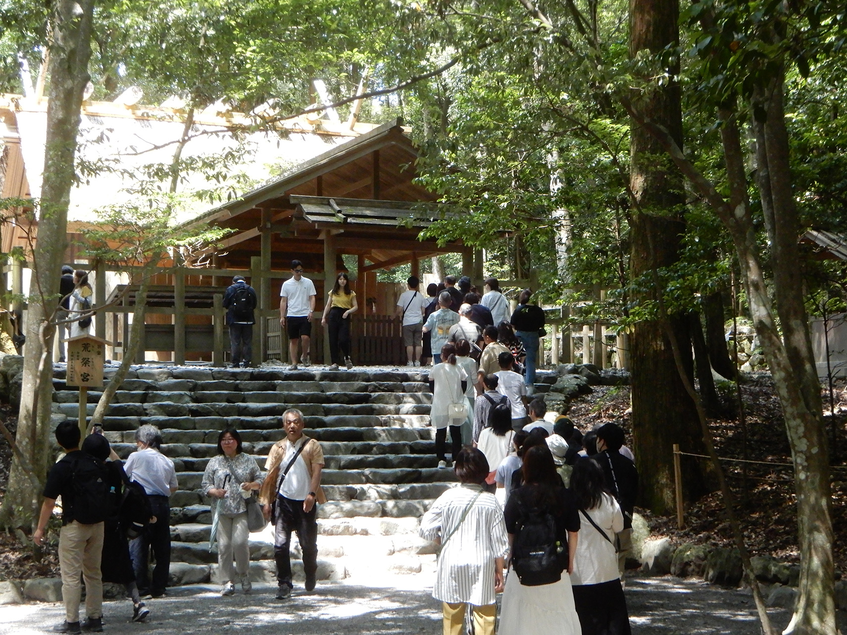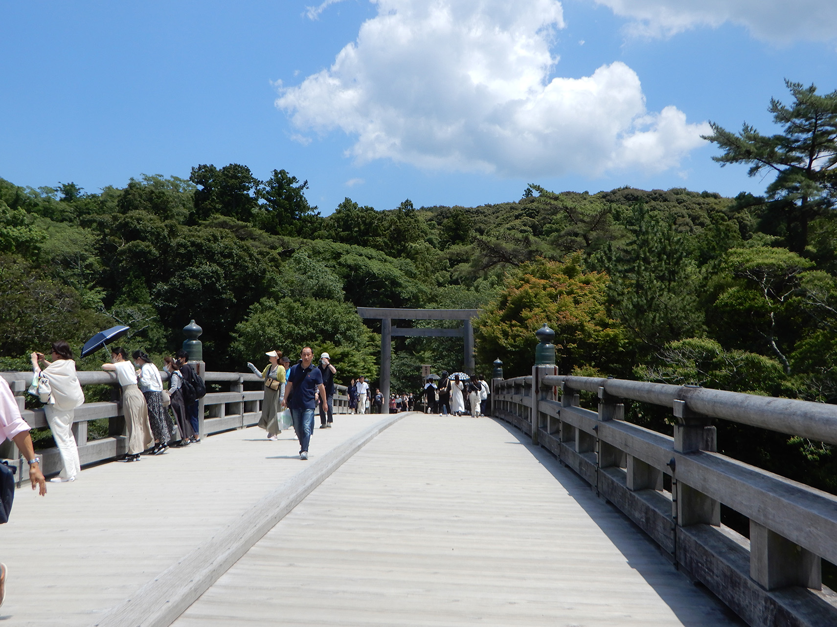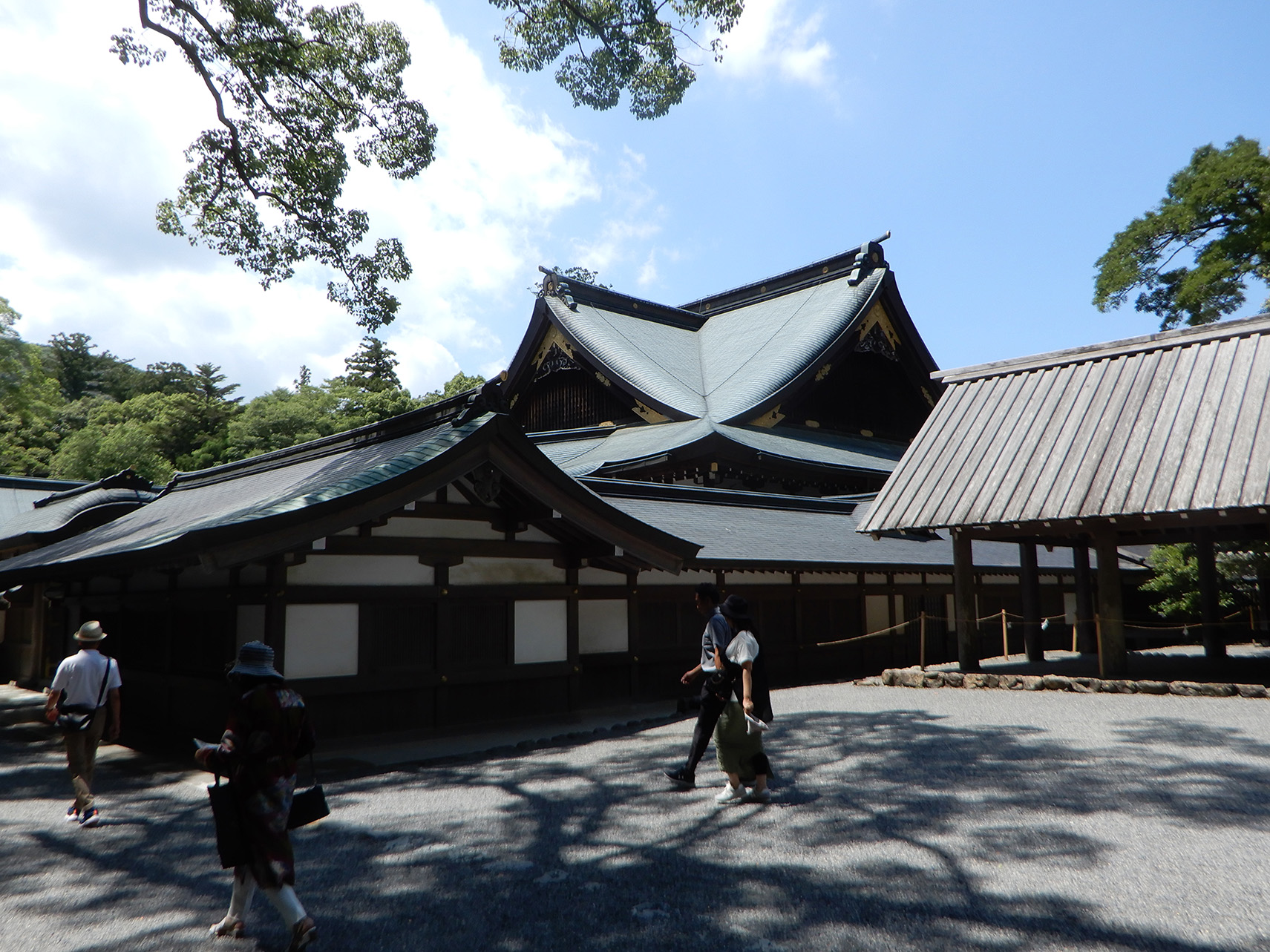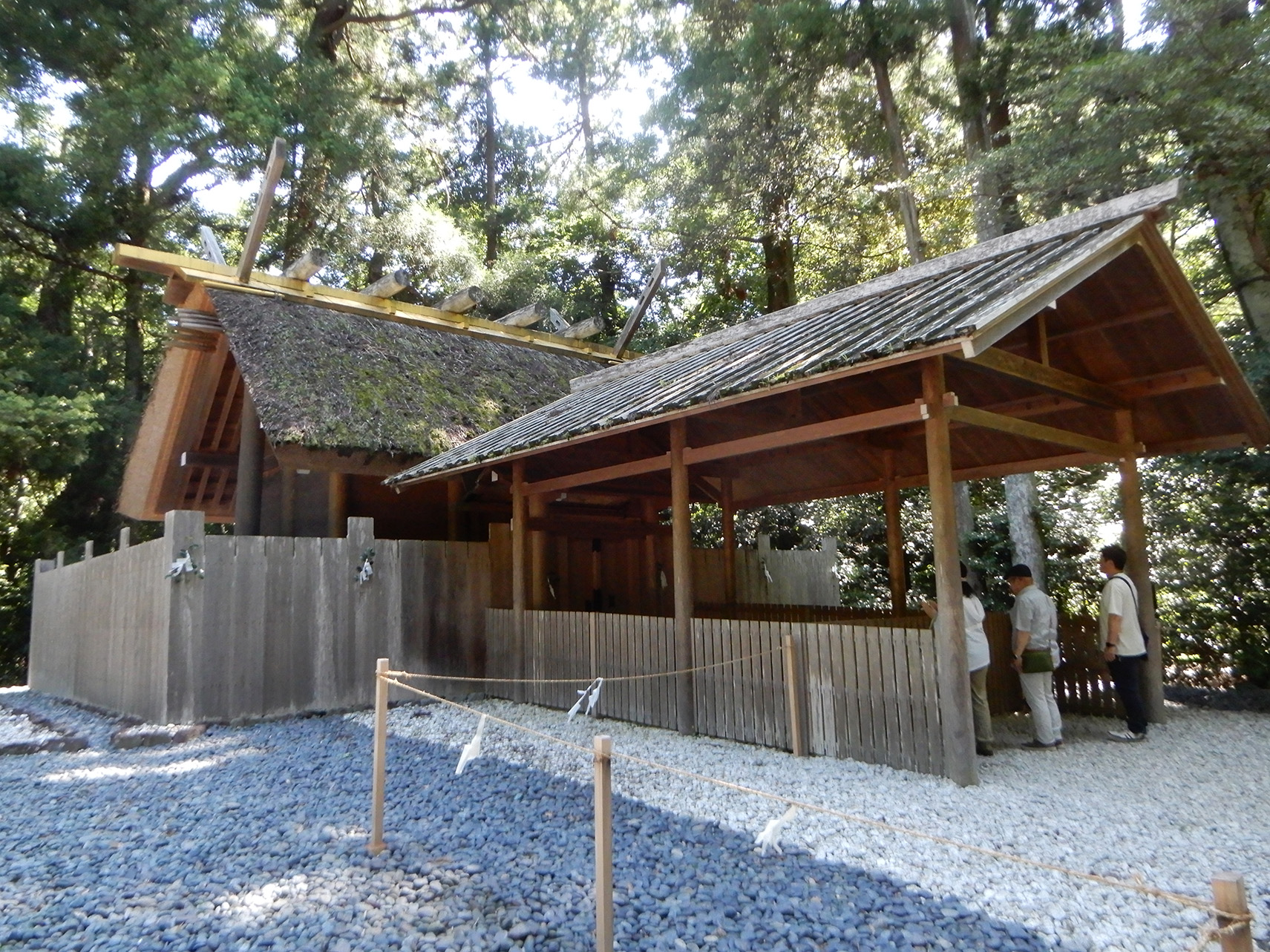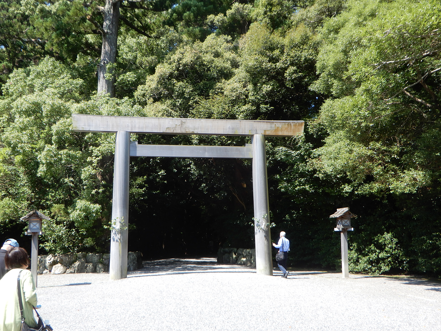 This was the first really sunny day we'd had in a while, though thankfully it looks like the good weather is going to hold for the rest of the trip. Anyway, now that there was no more rain, it was time to spend the day outdoors and see the major sites in Ise itself. We started with Geku, the Outer Shrine of the Ise Grand Shrines, which was just down the road from our hotel. As with Meteo Iwa, the Grand Shrines were something I first visited with my mom many years ago when we stayed in Nagoya. Geku is set in a forest near Iseshi station. Both it and Naiku (the Inner Shrine) are among the most sacred shrines in Shintoism. Gaiku enshrines Tokouke-Omikami, god of agriculture and Naiku the sun goddess Amaterasu. One especially unique element of the Grand Shrines is that Geku, Naiku, and all the little shrines and shrine buildings in their complexes are dismantled and rebuilt on adjacent sites, using new materials created with traditional building techniques, every 20 years (next set to happen in 2033). As such, the smaller shrines around Geku are rather simple in design and even the main shrine, while impressive in its own way (and mostly inaccessable to the public), lacks the elaborate ornamentation found in many of Japan's famous shrines and temples. Still, Geku and its accompanying shrines are interesting to see and the walk through the forested complex is very scenic. One new addition since my previous visit is the Sengukan Museum (set by a pond and iris field), which is all about the shrines and especially the rebuilding process. It's a nice and intersting museum that unfortunately lacks English signage. However, the clerk did give me an English pamphlet which summarized the key information for each area, along with a very nice booklet that goes over the basics of not only the Grand Shines but Shintoism itself.