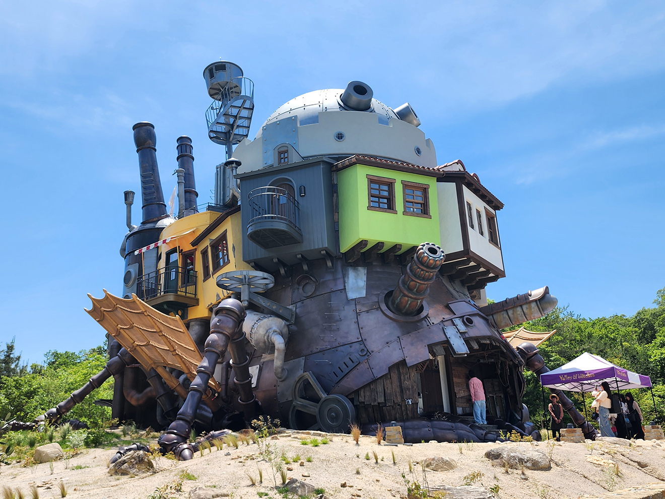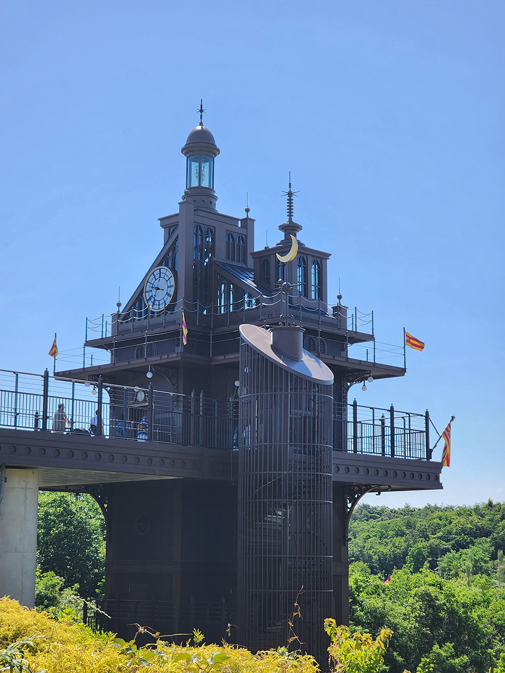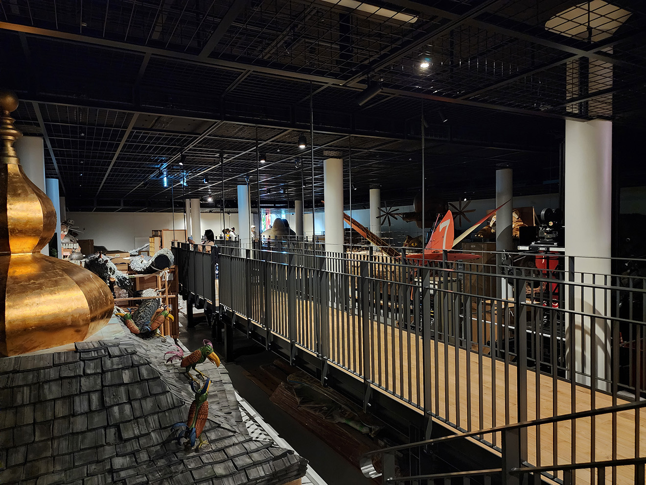 Anyway, I set off early so I could get there around when the park opens. Just after exiting the train station, I ran into this fancy elevator...which I ignored other than the photo since, it's a fairly easy walk down the hill and I didn't want to wait in line. Neat design though. Now, it's important to realize that Ghibli Park isn't anything close to Ghibli Disney World. First off, it's made up of several different locations scattered throughout a much larger public park, which also features things like a skating rink, playground, museum, kids' center, etc. Walking through the park is free, and you can get a look at some of the Ghibli areas that way, but actually entering each area requires a ticket. My warehouse time wasn't until 1 - 2 PM, so I started off going clockwise from the elevator to see what I could find. The first area I encountered was the Hill of Youth. It contains recreations of a couple of buildings and other structures from various Ghibli movies such as The Cat Returns and Whisper of the Heart. The biggest part is a recreation of The World Emporium from Whisper of the Heart, but going inside there requires that premium ticket I mentioned earlier. It was fun to look around a little and pose for a photo or two (one of the main activities throughout the park), but there was no reason to stay at the Hill of Youth for very long. Continuing on through some trees and flower fields, I found a cat bus station. You don't actually need a park ticket to ride the cat bus, but you do need to buy a separate bus ticket either way. It runs between some of the most distant parts of the park, though you can always ignore it and walk. There's also a fairly large cat themed playground if you have kids, but that also costs extra. Right past those, however, was the next area, Mononoke Village (based on Princess Mononoke, obviously enough). That statues are eye catching (one even doubles as a slide for small children), and there's a snack stand. But the main focus is Tatara-ba. In addition to being rather picturesque, if you go inside you can pay an extra fee to learn how to grill gohei-mochi (a type of sticky rice on a skewer, covered in sauce), which you can then eat. Back by the cat bus, you can also buy a cheap ticket to go to the overlook for the Valley of Witches. Note that it's just an overlook. The valley itself is included in the park ticket and is entered elsewhere. But it doesn't cost much, you get your choice between a short hike and tram, and it's a nice view. I took the tram up, hiked down, and then walked over to the Valley of Witches. The Valley is the largest area and the only one you can re-enter after leaving. There's a nice looking restaurant (which had a very long line when I passed), along with some snack stands and the bakery from Kiki's Delivery Service if you want something to eat. If you're not looking to eat or buy some souvenirs, it also has the park's only two rides (if you don't count trams and the cat bus), though they're aimed squarely at kids. But the main draw is all the neat buildings, most of which are recreations of places from various Ghibli movies (mainly ones with magic, hence the Valley of Witches). I was able to enter some of them, but several, including the Okino Residence (Kiki's family's house) and Howl's Castle require the premium ticket. That was a bit disappointing, since Howl's castle especially looks fantastic from the outside and I'd love to go in. In case you're wondering, these premium ticket buildings don't contain rides or anything, they're just highly accurate recreations of buildings from the movies, so you can step into the worlds of your favorite characters. Even without the premium ticket, I did have fun exploring the valley and there was a lot more to see and do than in the previous areas. Next up was the Dondoko Forest, but that one is a bit remote compared to the others, requiring a 600+ meter walk through the forest. It's also pretty small. There's a big Totoro that kids can play inside and there's a recreation of Satsuki and Mei's house from the same movie, but that's about it. Unsurprisingly, the house requires the premium ticket, but there is a free view point in case you don't have one. The forest is also next to a nice little free Japanese garden, so I took a different route back, going through the garden and around a pond or lake before returning to my starting point for my warehouse entry. As previously mentioned, the Grand Warehouse is the only part of the park that requires timed entry, though once you're in you can stay as long as you want. And you'll probably want to stay for a while. Despite being indoors, its larger than most of the other areas and much more densely packed. Upon entering, you're given a ticket you can use to go see one of a handful of exclusive Ghibli short films. It's the same selection as at the Ghibli Museum and they rotate periodically. The current film plays throughout the day and you can go to any show, though only once. The current one (which I fortunately hadn't seen before) was about a lost puppy making its way through town in order to find its way home. Very cute. There's also some exhibits. I'm not sure if they're all permanent or some rotate like at the Ghibli Museum, but when I visited there was one focused on "everything Ghibli" and one on food in Ghibli movies (which once ran for a limited time at the museum). There was also the long promised adult sized cat bus. The warehouse also contains a pretty large children's play area, some shops, a cafe, and an actual warehouse where they store old display stuff. But most of it is dedicated to recreations of scenes from various movies, such as the robot from Castle in the Sky, Arietty's house and garden, and many, many more. In fact, there was at least one major photo spot for just about every Ghibli movie. Many had a bit of a line, but the most popular by far was this one from Spirited Away. Getting that picture with No Face required 30 - 40 mi