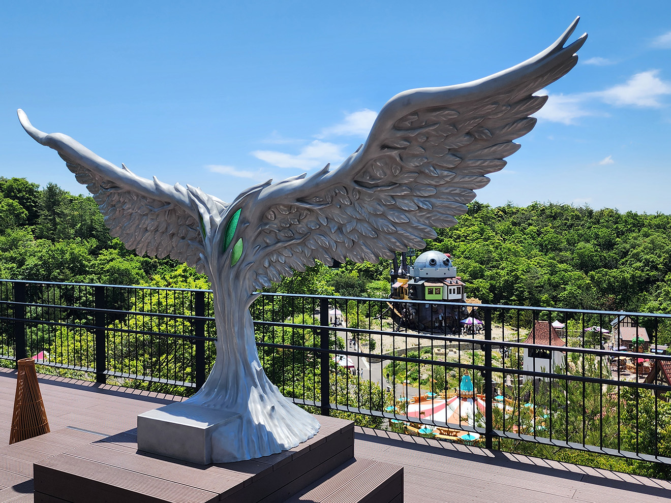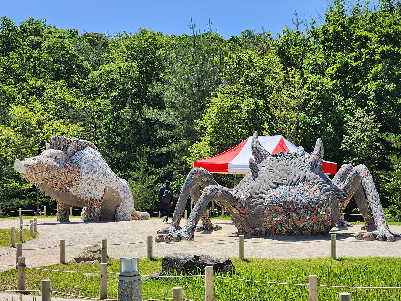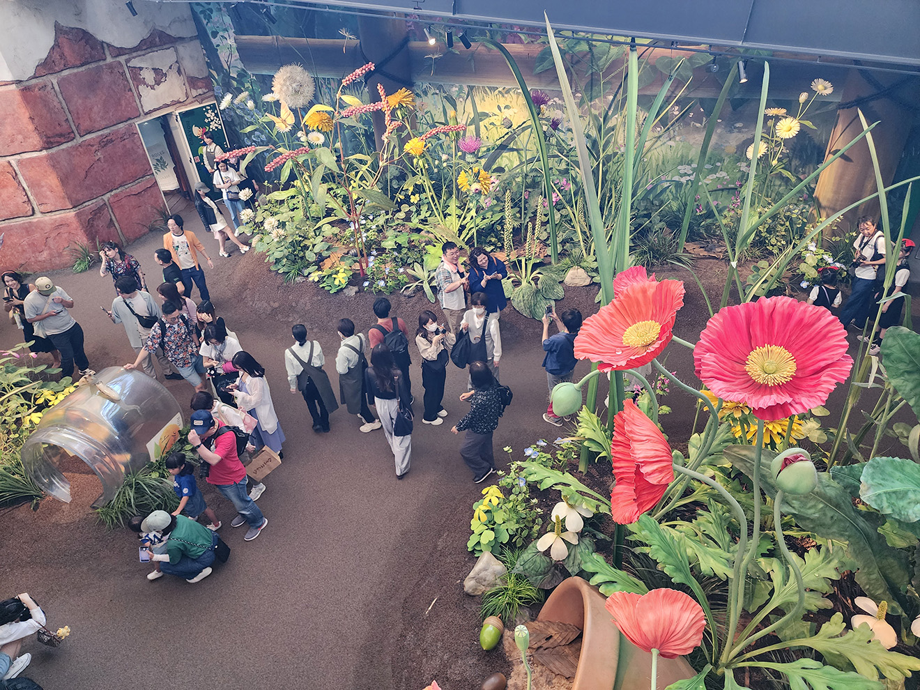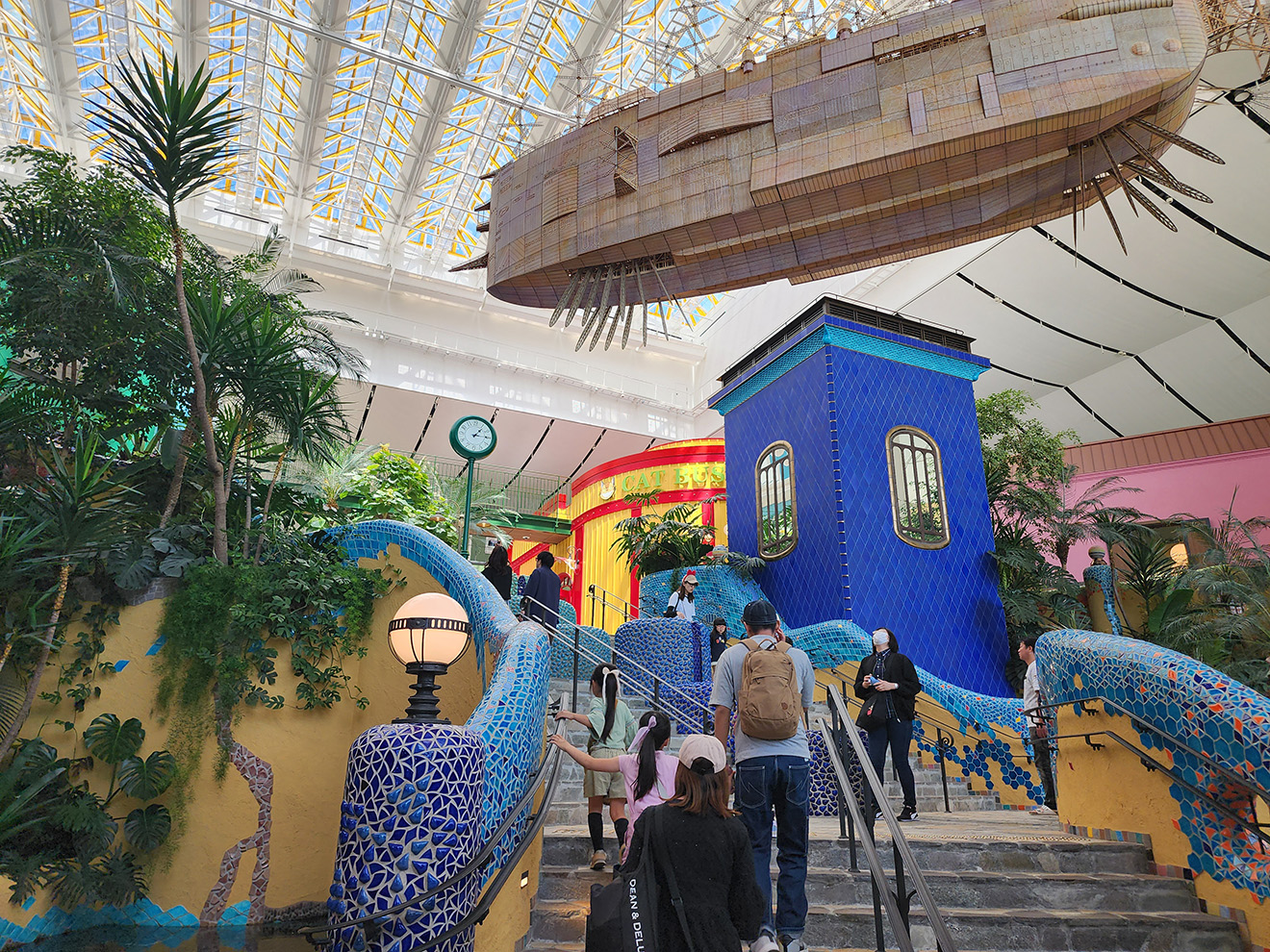 Anyway, I set off early so I could get there around when the park opens. Just after exiting the train station, I ran into this fancy elevator...which I ignored other than the photo since, it's a fairly easy walk down the hill and I didn't want to wait in line. Neat design though. Now, it's important to realize that Ghibli Park isn't anything close to Ghibli Disney World. First off, it's made up of several different locations scattered throughout a much larger public park, which also features things like a skating rink, playground, museum, kids' center, etc. Walking through the park is free, and you can get a look at some of the Ghibli areas that way, but actually entering each area requires a ticket. My warehouse time wasn't until 1 - 2 PM, so I started off going clockwise from the elevator to see what I could find. The first area I encountered was the Hill of Youth. It contains recreations of a couple of buildings and other structures from various Ghibli movies such as The Cat Returns and Whisper of the Heart. The biggest part is a recreation of The World Emporium from Whisper of the Heart, but going inside there requires that premium ticket I mentioned earlier. It was fun to look around a little and pose for a photo or two (one of the main activities throughout the park), but there was no reason to stay at the Hill of Youth for very long. Continuing on through some trees and flower fields, I found a cat bus station. You don't actually need a park ticket to ride the cat bus, but you do need to buy a separate bus ticket either way. It runs between some of the most distant parts of the park, though you can always ignore it and walk. There's also a fairly large cat themed playground if you have kids, but that also costs extra. Right past those, however, was the next area, Mononoke Village (based on Princess Mononoke, obviously enough). That statues are eye catching (one even doubles as a slide for small children), and there's a snack stand. But the main focus is Tatara-ba. In addition to being rather picturesque, if you go inside you can pay an extra fee to learn how to grill gohei-mochi (a type of sticky rice on a skewer, covered in sauce), which you can then eat. Back by the cat bus, you can also buy a cheap ticket to go to the overlook for the Valley of Witches. Note that it's just an overlook. The valley itself is included in the park ticket and is entered elsewhere. But it doesn't cost much, you get your choice between a short hike and tram, and it's a nice view. I took the tram up, hiked down, and then walked over to the Valley of Witches. The Valley is the largest area and the only one you can re-enter after leaving. There's a nice looking restaurant (which had a very long line when I passed), along with some snack stands and the bakery from Kiki's Delivery Service if you want something to eat. If you're not looking to eat or buy some souvenirs, it also has the park's only two rides (if you don't count trams and the cat bus), though they're aimed squarely at kids. But the main draw is all the neat buildings, most of which are recreations of places from various Ghibli movies (mainly ones with magic, hence the Valley of Witches). I was able to enter some of them, but several, including the Okino Residence (Kiki's family's house) and Howl's Castle require the premium ticket. That was a bit disappointing, since Howl's castle especially looks fantastic from the outside and I'd love to go in. In case you're wondering, these premium ticket buildings don't contain rides or anything, they're just highly accurate recreations of buildings from the movies, so you can step into the worlds of your favorite characters. Even without the premium ticket, I did have fun exploring the valley and there was a lot more to see and do than in the previous areas. Next up was the Dondoko Forest, but that one is a bit remote compared to the others, requiring a 600+ meter walk through the forest. It's also pretty small. There's a big Totoro that kids can play inside and there's a recreation of Satsuki and Mei's house from the same movie, but that's about it. Unsurprisingly, the house requires the premium ticket, but there is a free view point in case you don't have one. The forest is also next to a nice little free Japanese garden, so I took a different route back, going through the garden and around a pond or lake before returning to my starting point for my warehouse entry. As previously mentioned, the Grand Warehouse is the only part of the park that requires timed entry, though once you're in you can stay as long as you want. And you'll probably want to stay for a while. Despite being indoors, its larger than most of the other areas and much more densely packed. Upon entering, you're given a ticket you can use to go see one of a handful of exclusive Ghibli short films. It's the same selection as at the Ghibli Museum and they rotate periodically. The current film plays throughout the day and you can go to any show, though only once. The current one (which I fortunately hadn't seen before) was about a lost puppy making its way through town in order to find its way home. Very cute. There's also some exhibits. I'm not sure if they're all permanent or some rotate like at the Ghibli Museum, but when I visited there was one focused on "everything Ghibli" and one on food in Ghibli movies (which once ran for a limited time at the museum). There was also the long promised adult sized cat bus. The warehouse also contains a pretty large children's play area, some shops, a cafe, and an actual warehouse where they store old display stuff. But most of it is dedicated to recreations of scenes from various movies, such as the robot from Castle in the Sky, Arietty's house and garden, and many, many more. In fact, there was at least one major photo spot for just about every Ghibli movie. Many had a bit of a line, but the most popular by far was this one from Spirited Away. Getting that picture with No Face required 30 - 40 mi