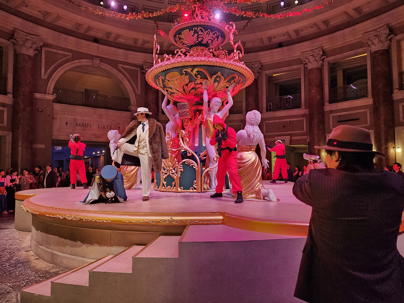 My plan was to check out the new Immersive Fort in Odaiba. Back when I wrote about Odaiba a bit earlier in this travelogue, I briefly mentioned another mall besides the three I'd visited. There used to be one more major mall (or maybe two, depending how you count it), the combination of Venus Fort (a fancy European themed mall) and Pallete Town (which had a Toyota showroom, car museum, and big ferris wheel). Well, they closed during the COVID lock-downs, though I'm not entirely sure if it was the the loss of business due to the lock-downs that did it, or if they were always planning to redevelop the area. At this point Pallete Town is completely gone and being replaced by a big sports center and arena. I believe Toyota is going to be putting something new in there as well (right now, there is a go-kart track if you really need to get something car themed in. Venus Fort, meanwhile, is still there but has been turned into Immersive Fort, a rather unique indoor theme park. Once inside, you enter into a European town whose idyllic appearance hides a conflict between to mafia families (though there's clearly a good one and and a bad one). Basically, the staff are all actors playing different roles and you can interact with them and potentially get caught up in different parts of the adventure. For example, I wandered around a bit after entering but was soon kidnapped (along with some others) by one of the members of the bad Mafia group. We were eventually rescued by one of the good guys, leading another group of visitors, and it involved defusing a bomb and running down a dark alley with bullets flying (or at least special effects to that extent). There are a number of events in the mafia storyline that take places in different parts of the park throughout the day that you could be potentially caught up in. The whole kidnapping bit was fun, though naturally it's a little hard to take it entirely seriously when you know it's all part of the show. I should note, the mafia stuff is all in Japanese, though they actors were certainly happy to incorporate foreigners and throw in some English words. I knew enough Japanese to follow along easily enough, and I suspect many of the events you can work out by context, but non-Japanese speakers could struggle a bit at times. In addition to the ongoing mafia events, there's a number of separate self-contained attractions as well. The first I ended up trying was Immersive Stories, which has you walking through the story of Hansel and Gretel. This was, honestly, the least interesting thing in Immersive Fort. You're just walking from room to room, watching the story unfold via sets and CG. On the plus side, through the use of a free app, it does give you a complete and perfectly synced set of English subtitles. There's no real interactivity, but you do get to choose if you want to watch the story from the perspective of Hansel and Gretel (which tells the classic fairy tale pretty straight) or the witch (which is a bit more interesting). I did both back to back, since it was fairly short and simple. Next I tried out Identity V. That one's a game where you and several others need to escape from a creepy mansion while avoiding a big clown monster guy who is roaming around. It's short (you're only given several minutes per run) but fun and there's multiple possible layouts. You also get scored on your performance. I only had time for one round at first, but I came back to give it another go later in the day. Didn't quite clear it, but my team the second time came pretty close. As a note, they have an English set of instructions for the game but the story (not that it's very important) is only in Japanese. One other smaller attraction (though I didn't get to it myself until much later in the day) is Jack the Ripper, which is basically just a haunted house where you walk through the backstreets of London while getting jump-scared by Jack. I think I've mentioned it before, but haunted houses don't really do anything for me. Though I did think this one was fairly well done rather than just throwing endless blood and gore at you like a lot of them do these days. The opening movie that sets the story has English subtitles and after that there really isn't any other dialogue. Anyway, after trying out Immersive Stories and Identity V, it was getting close to the time for my first major attraction. Yes there's the mafia stuff, and the smaller self-contained attractions I mentioned above, but there's also a few bigger shows. These are larger, longer, and most of them require an additional timed entry ticket (purchased separately). That said, they're also essentially the highlights of Immersive Fort and, if you go, you really should try some of them. Two are anime cross-overs, based on Tokyo Revengers and Oshi no Ko. But neither are series I'm especially familiar with and there wasn't enough time to do everything in one day, so I skipped them in favor of the other two. First was The Sherlock. Dubious grammar aside, it's a murder mystery staring Sherlock Holmes. Basically, a very larger chunk of Venus Fort has been sectioned off and turned into Holmes era London. There's a series of murders taking place and Holmes is called in. Think of it like a 90 minute play. Except that different things are happening in different locations all at the same time and it's up to you to explore and see what you find. For example, I happened to witness two of the murders (purely by chance), saw a bit of a circus, and eventually stumbled across Holmes and Watson (took me a while to find them). While you can certainly stalk Holmes, or any other character, the actors often walk very quickly and occasionally disappear into employee only areas, so at times you will have to go exploring. I also noticed some visitors getting pulled aside by some of the actors, though I wasn't one of them so I don't know what went on there. There were also many times when I was following one character only to see or h